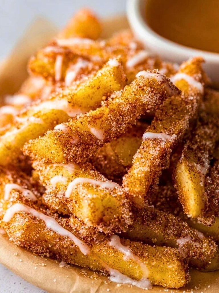 Whether you’re serving them with a caramel dipping sauce, a dusting of powdered sugar, or a drizzle of vanilla glaze, these apple fries are guaranteed to be a hit. No deep frying, no fuss—just golden, crunchy perfection that brings comfort food vibes with a fruity twist.