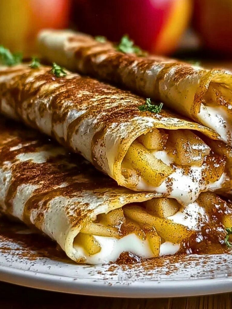 Spread a generous layer of cream cheese on half of each tortilla. Top with a spoonful of the warm apple filling, then fold the tortilla over to create a half-moon shape.