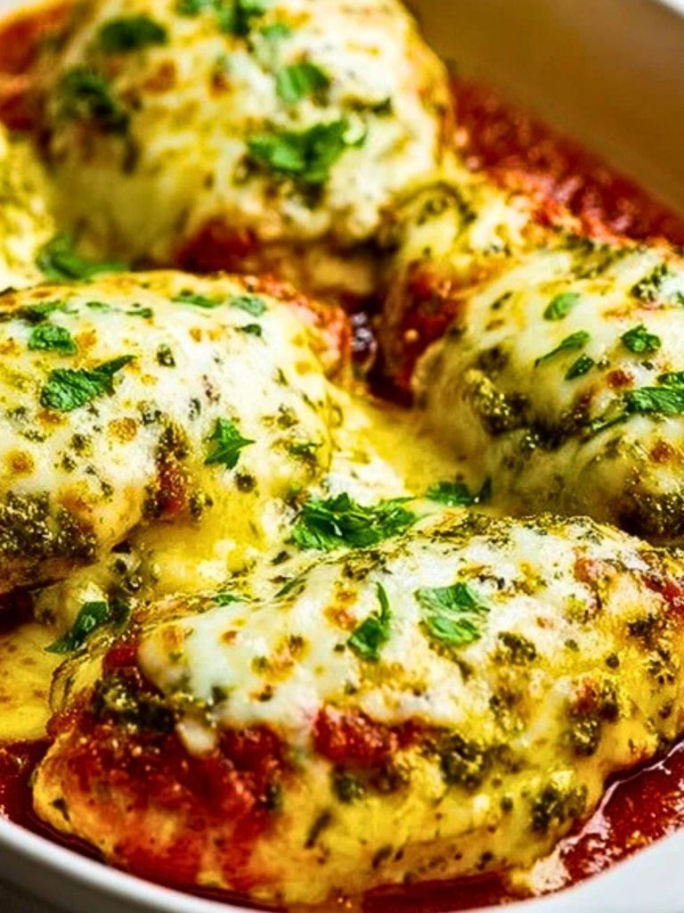 There’s something irresistibly comforting about juicy chicken breasts baked under a blanket of bubbling mozzarella, fragrant basil pesto, and a vibrant layer of marinara sauce. This Baked Pesto Mozzarella Chicken brings together the richness of Italian-inspired flavors in a weeknight-friendly dish that feels like a weekend indulgence.