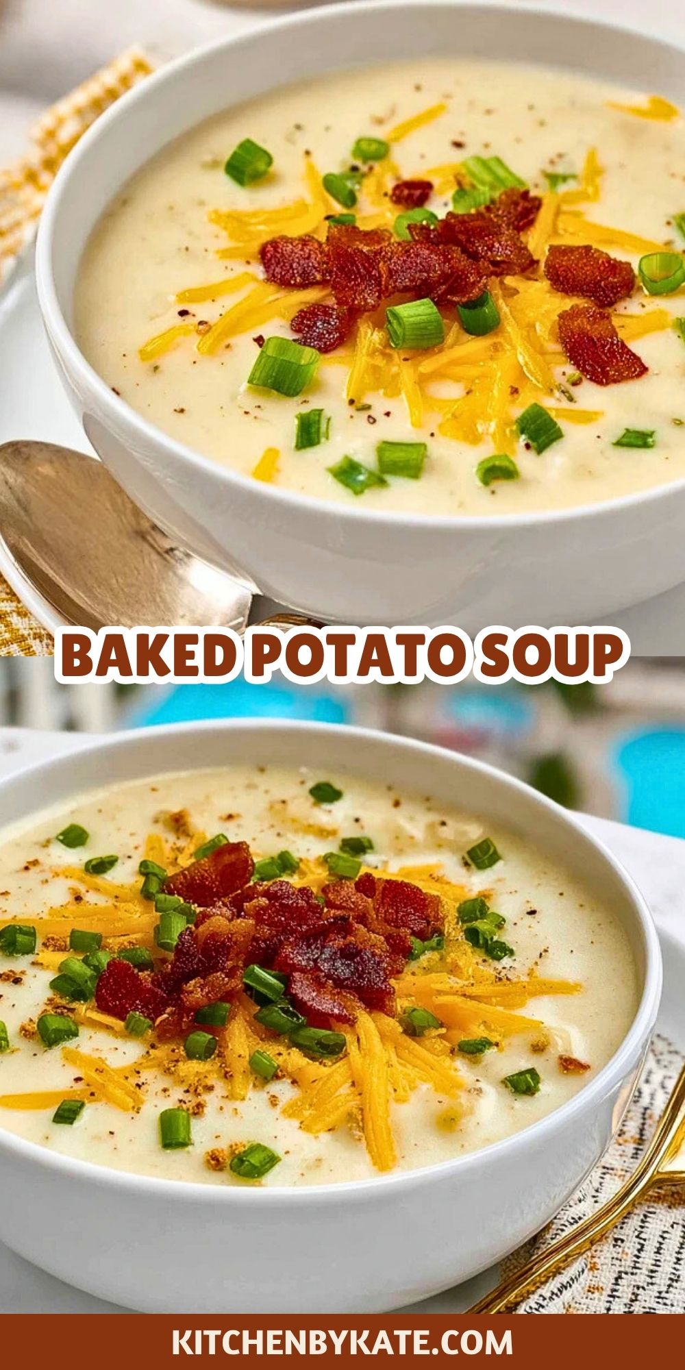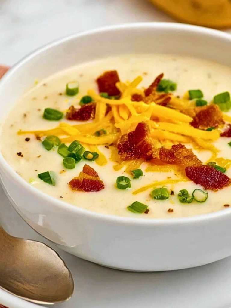 This creamy Baked Potato Soup recipe is the ultimate comfort food made with russet potatoes, cheddar cheese, bacon, and sour cream. It’s a cozy, hearty dish perfect for cold nights, and easy to make with simple ingredients. Ideal for meal prep, freezer-friendly, and customizable for any taste.