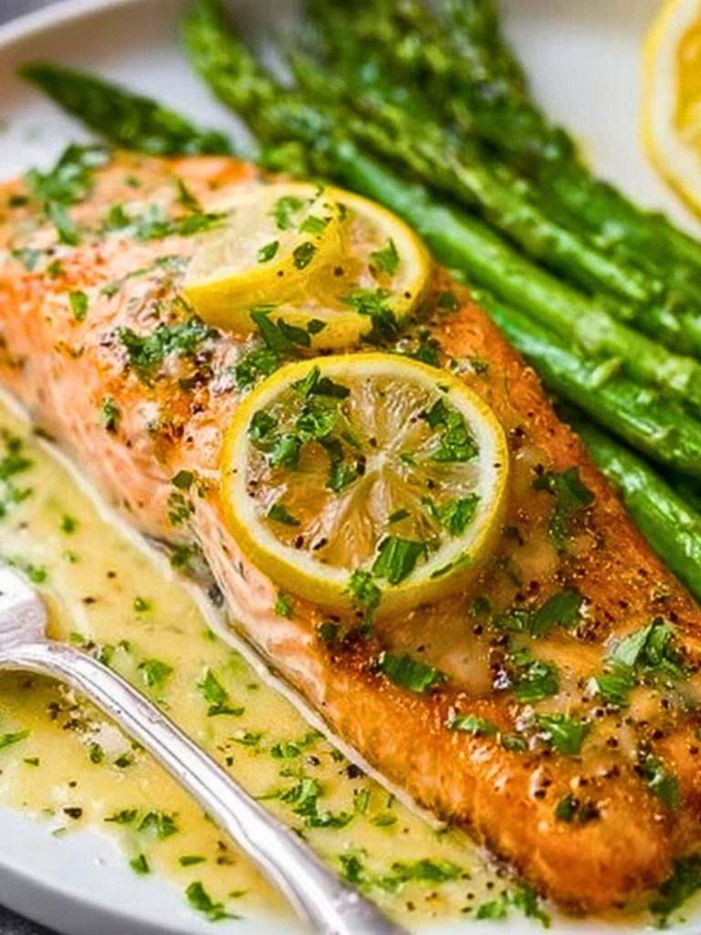 This Baked Salmon in Foil with Asparagus and Lemon Garlic Butter Sauce is an easy, healthy dinner packed with flavor. It features flaky salmon, crisp asparagus, and a buttery lemon garlic sauce—perfect for quick weeknights or elegant dinners. Keywords: baked salmon, lemon garlic butter salmon, foil packet salmon, healthy salmon dinner, asparagus and salmon.