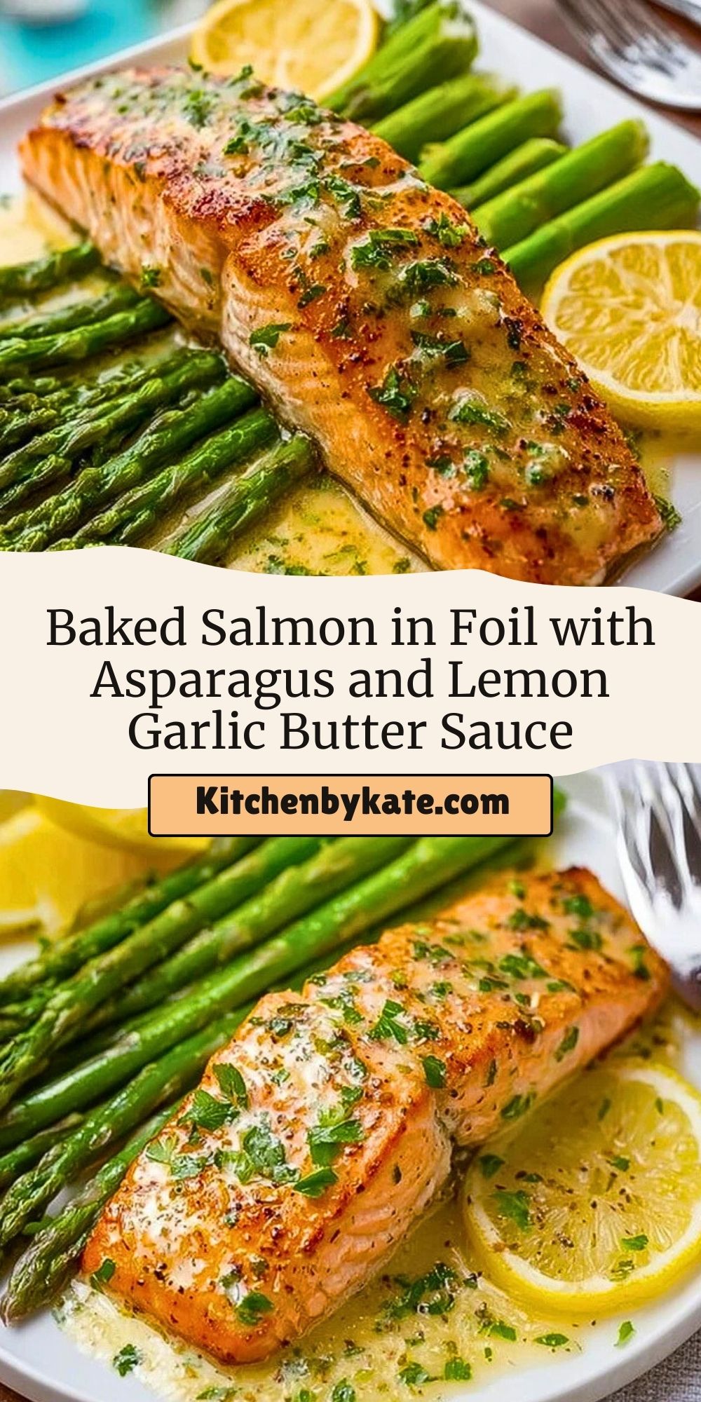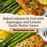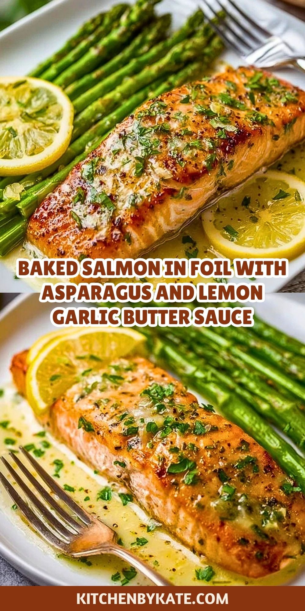 Baked Salmon in Foil with Asparagus and Lemon Garlic Butter Sauce