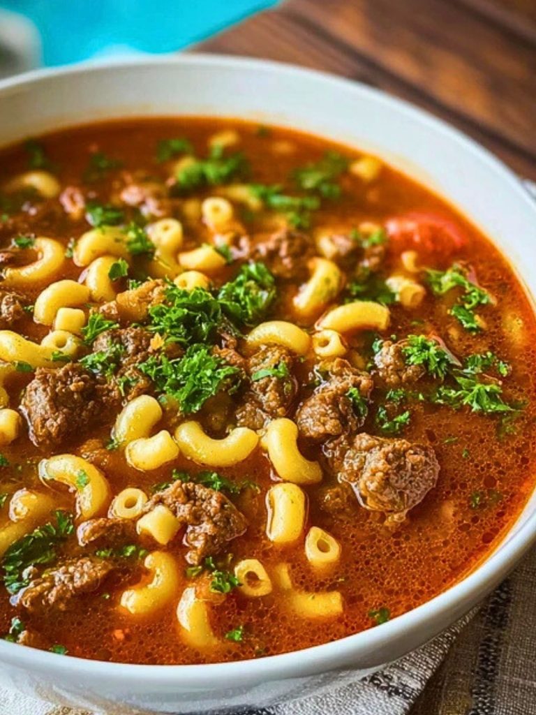 Cozy up with a bowl of Beef and Macaroni Soup, the ultimate comfort food that wraps you in warmth and nostalgia. This one-pot wonder is rich with ground beef, tender elbow macaroni, and a tomato-based broth infused with herbs. It’s the kind of meal that tastes like home, perfect for weeknights, rainy days, or whenever you need something hearty and soul-soothing.