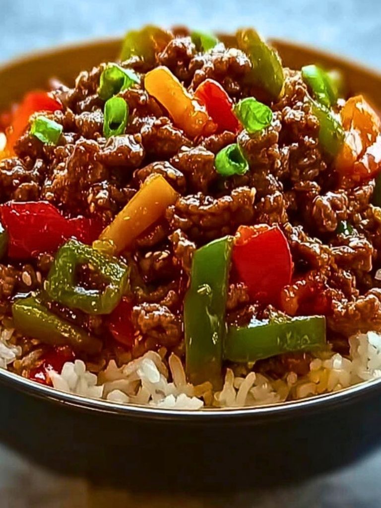 This Beef Pepper Rice Bowl is a quick, flavorful one-pan dinner packed with savory ground beef, colorful bell peppers, and a rich soy-pepper glaze served over fluffy rice. Perfect for busy weeknights or meal prep, this easy beef stir-fry bowl offers comfort and bold flavor with every bite.