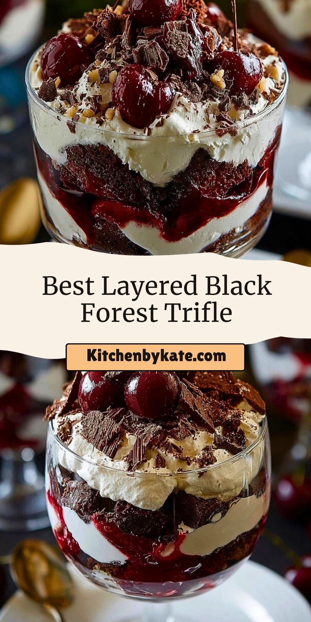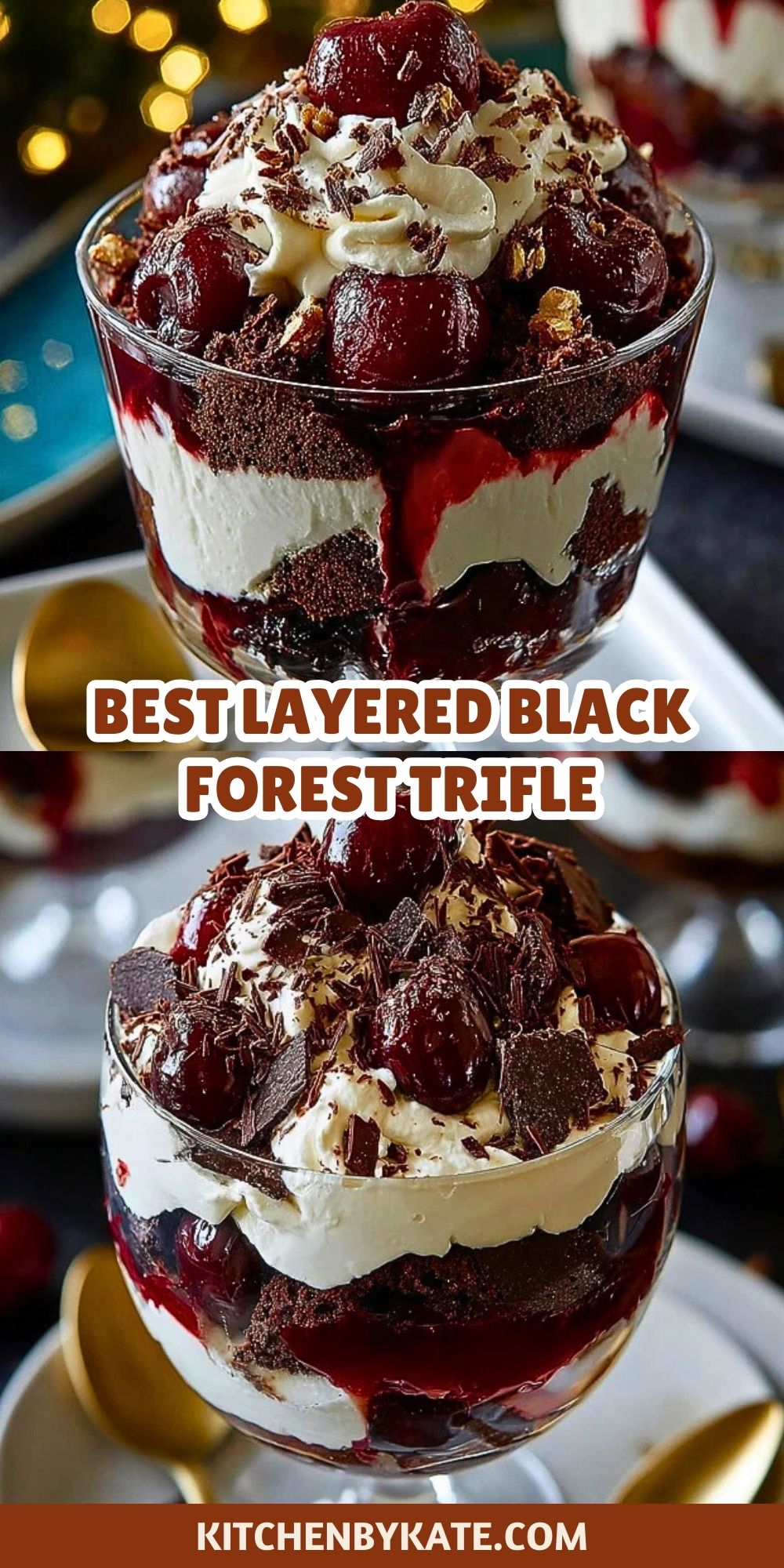This Best Layered Black Forest Trifle is an easy, no-bake dessert layered with moist chocolate cake, cherry pie filling, and fluffy whipped cream. A perfect holiday showstopper or party favorite, this trifle combines rich chocolate, tart cherries, and creamy textures for a visually stunning and flavor-packed treat. Ideal for make-ahead and customizable with Kirsch or fresh cherries.