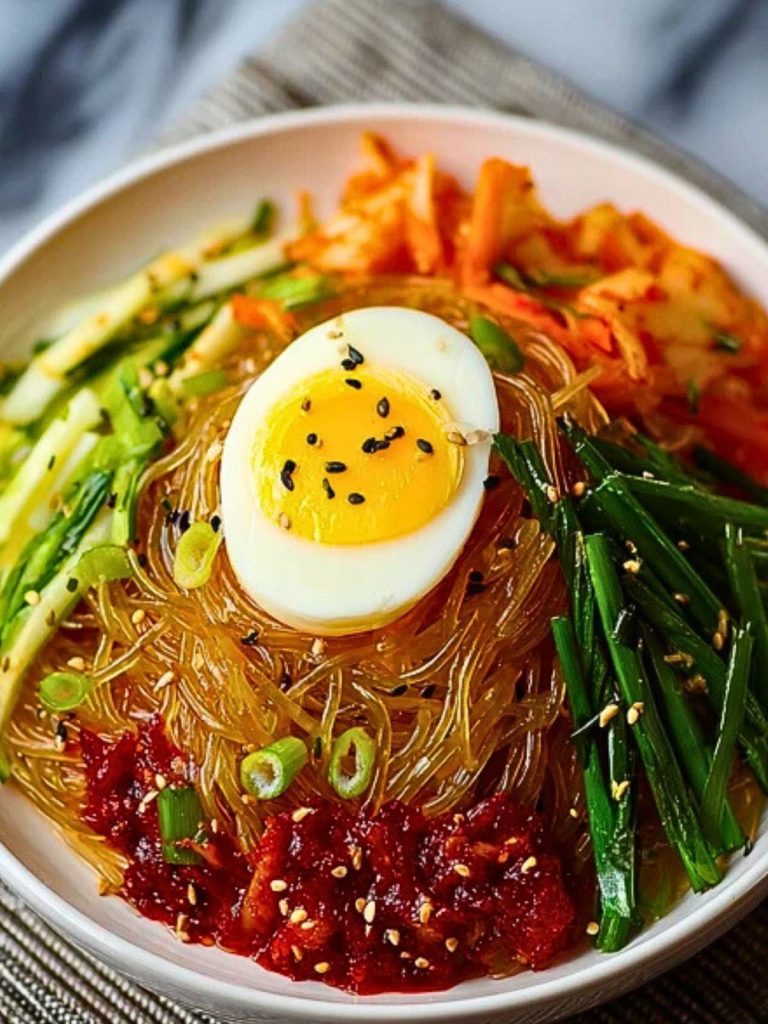 Bibimmyeon is a refreshing Korean cold noodle dish bursting with bold gochujang flavor, topped with crisp cucumbers, kimchi, and egg. This spicy Korean noodle bowl is perfect for hot days and quick dinners. Learn how to make the best Bibimmyeon with easy ingredients and storage tips!
