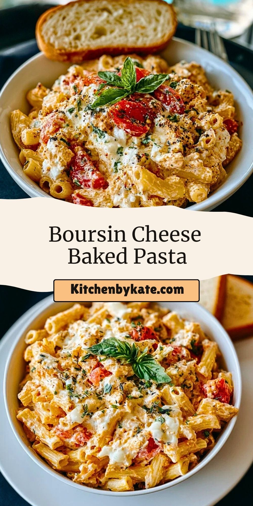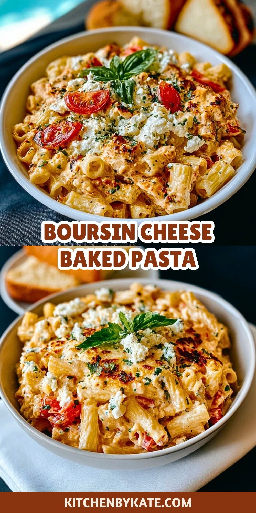 This Boursin Cheese Baked Pasta is a creamy, oven-baked comfort meal made with garlic & herb Boursin, cherry tomatoes, and tender pasta. A quick and easy weeknight dinner with gourmet flavor, perfect for family meals or entertaining guests.