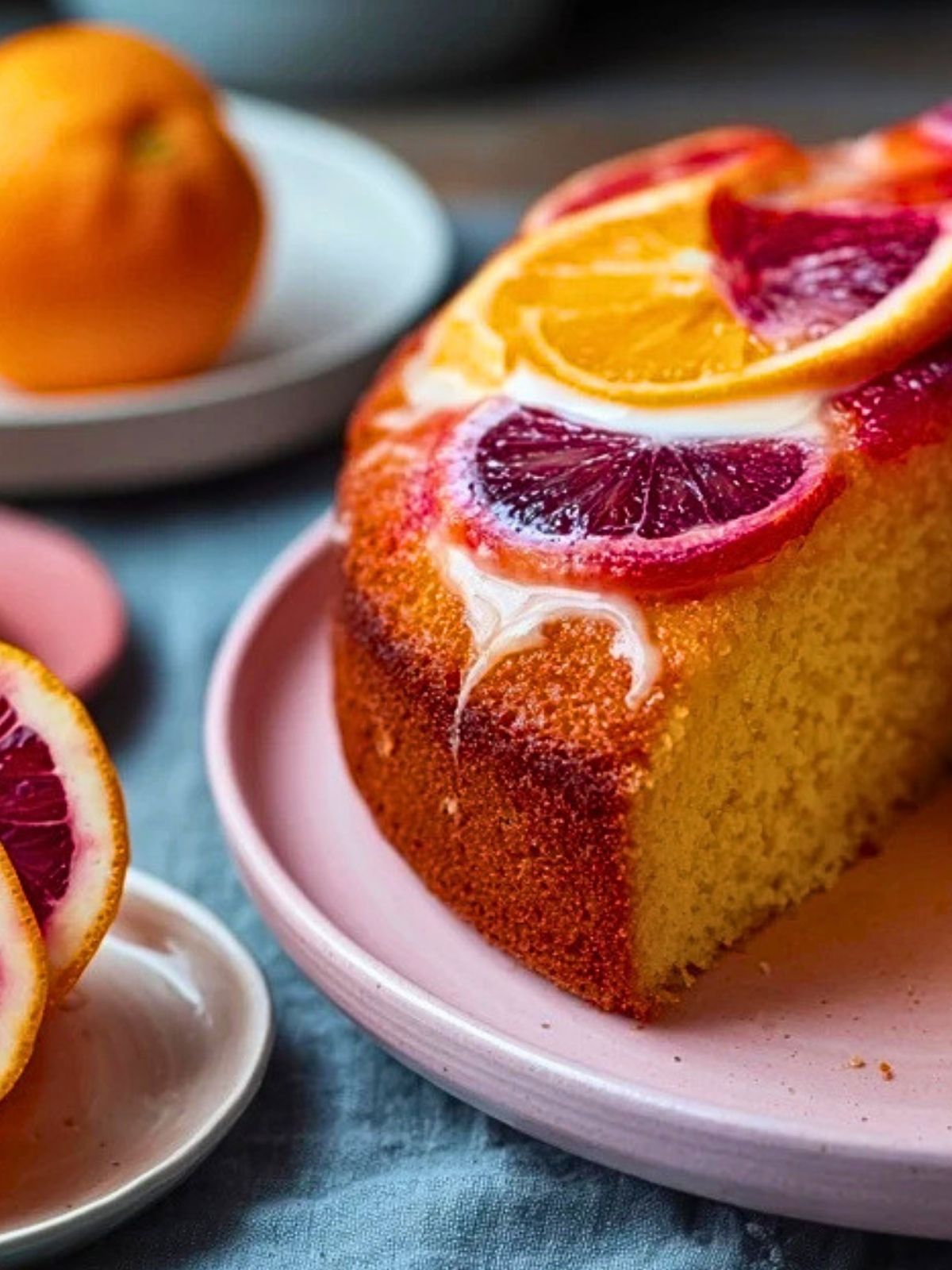 A simple mix of powdered sugar and blood orange juice works beautifully. It keeps the citrus flavor front and center without overpowering the cake.