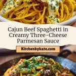 Cajun Beef Spaghetti in Creamy Three-Cheese Parmesan Sauce