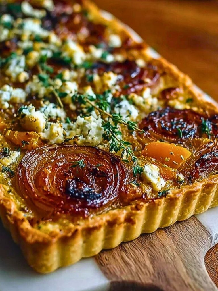 This Caramelized Onion Butternut Squash Tart blends caramelized onions, roasted butternut squash, and tangy goat cheese in a buttery tart shell—perfect for fall gatherings, vegetarian dinners, or elegant appetizers. Easy to make ahead and freezer-friendly, it’s a cozy seasonal favorite for brunch or holiday meals.