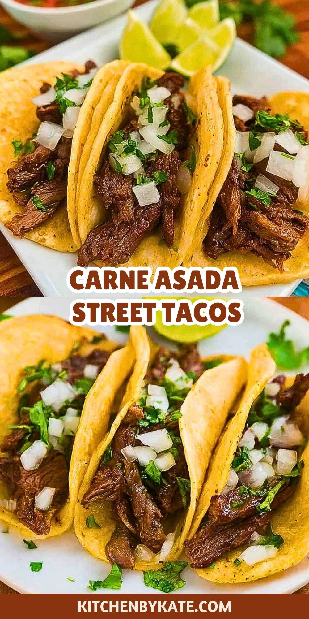 Carne Asada Street Tacos are the ultimate handheld dinner with bold Mexican flavor. Made with marinated grilled steak, fresh cilantro, onions, and warm corn tortillas, this quick and authentic taco recipe is perfect for weeknight meals or entertaining. Great with your favorite salsa and side dishes.