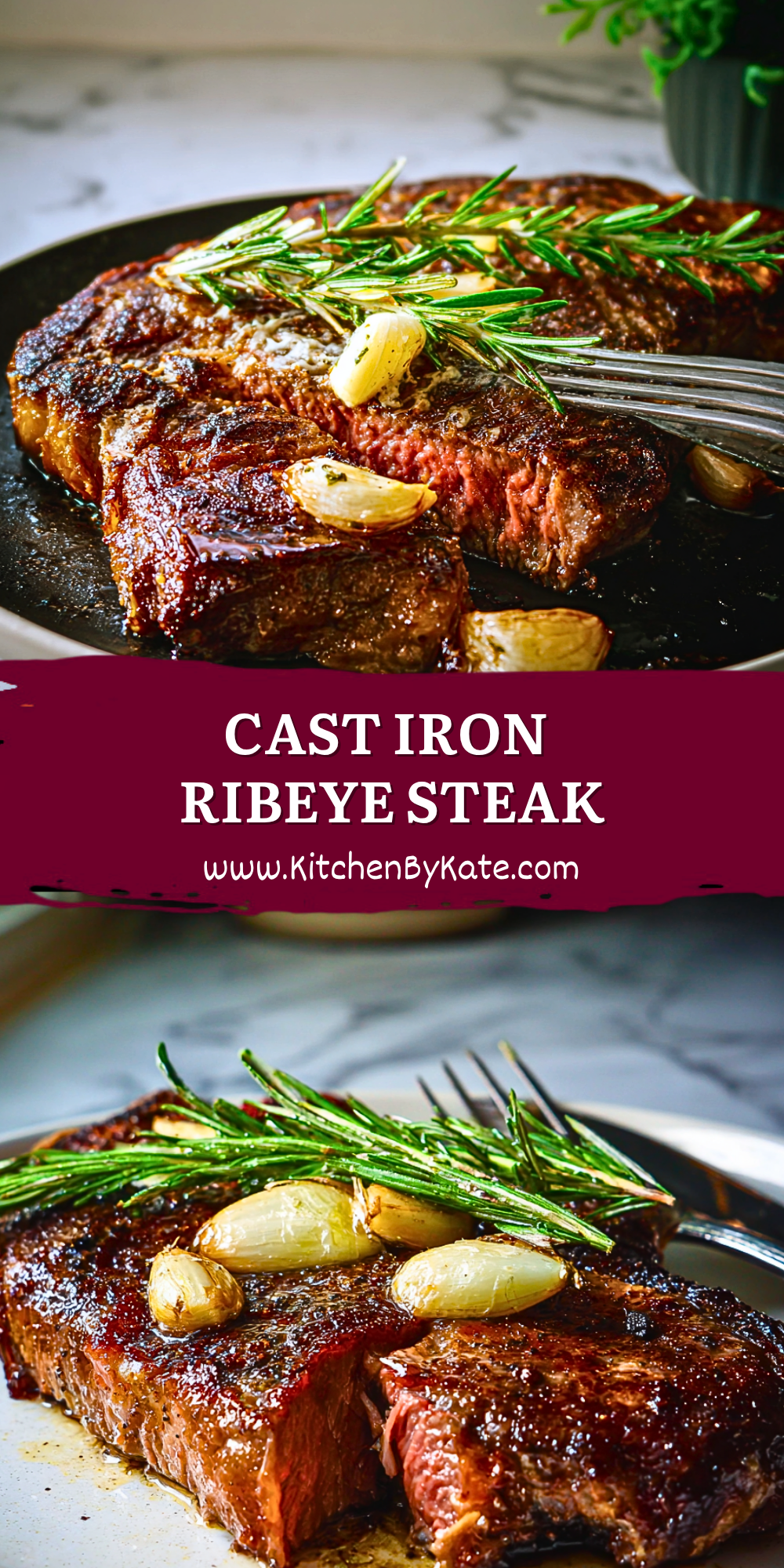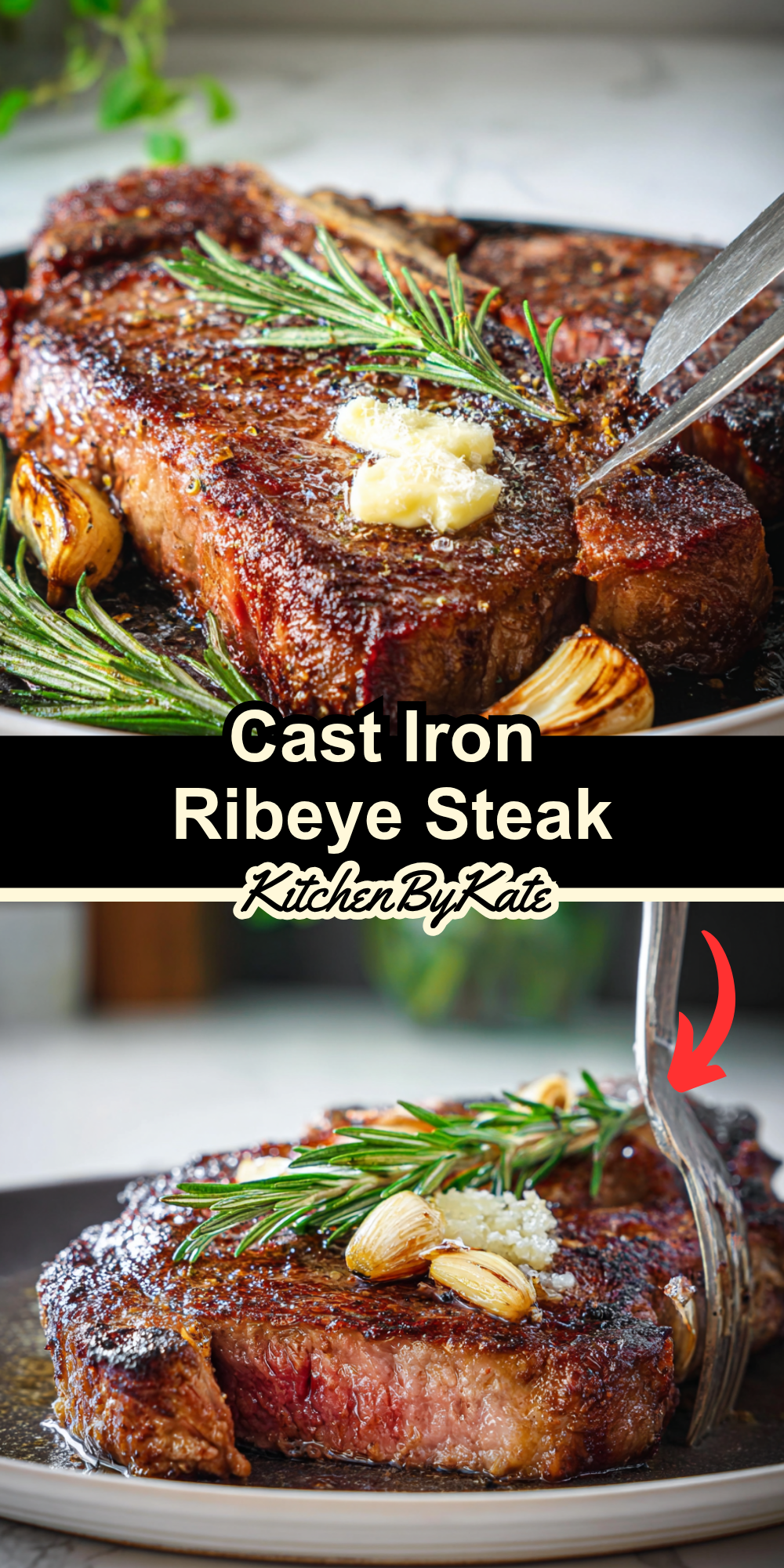 Serve your cast iron ribeye steak hot off the skillet with your favorite sides—mashed potatoes, roasted vegetables, or a crisp salad all make excellent companions. A drizzle of the pan butter over the top enhances every bite.