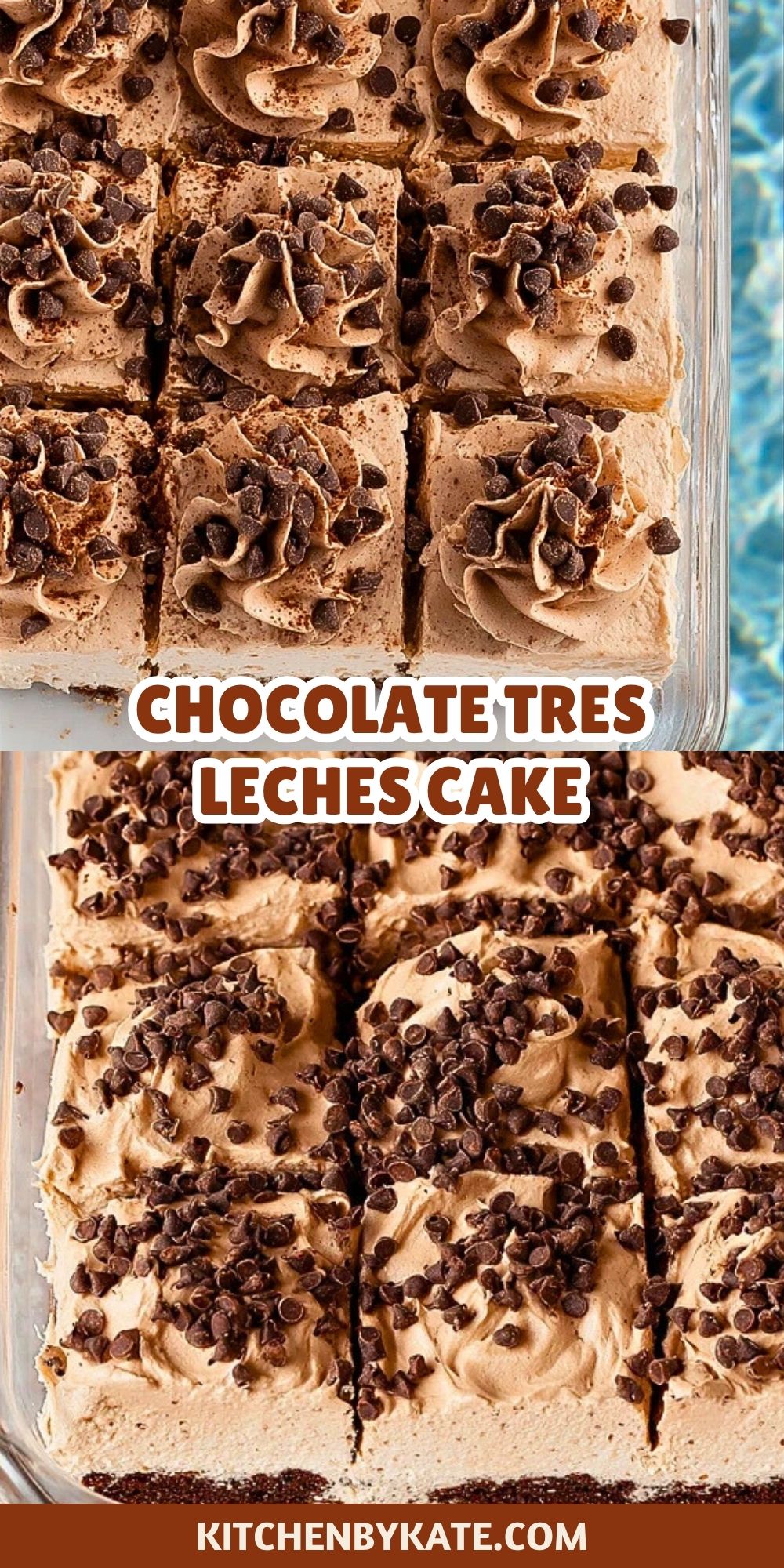 Decadent, rich, and unbelievably creamy, Chocolate Tres Leches Cake is everything you crave in a dessert and more. It takes the beloved Latin American classic and gives it a chocolate twist that feels both nostalgic and indulgent. Every bite melts in your mouth thanks to the trio of milks that soak into the light, airy chocolate sponge, and it’s topped with a velvety chocolate whipped cream frosting and plenty of mini chocolate chips.