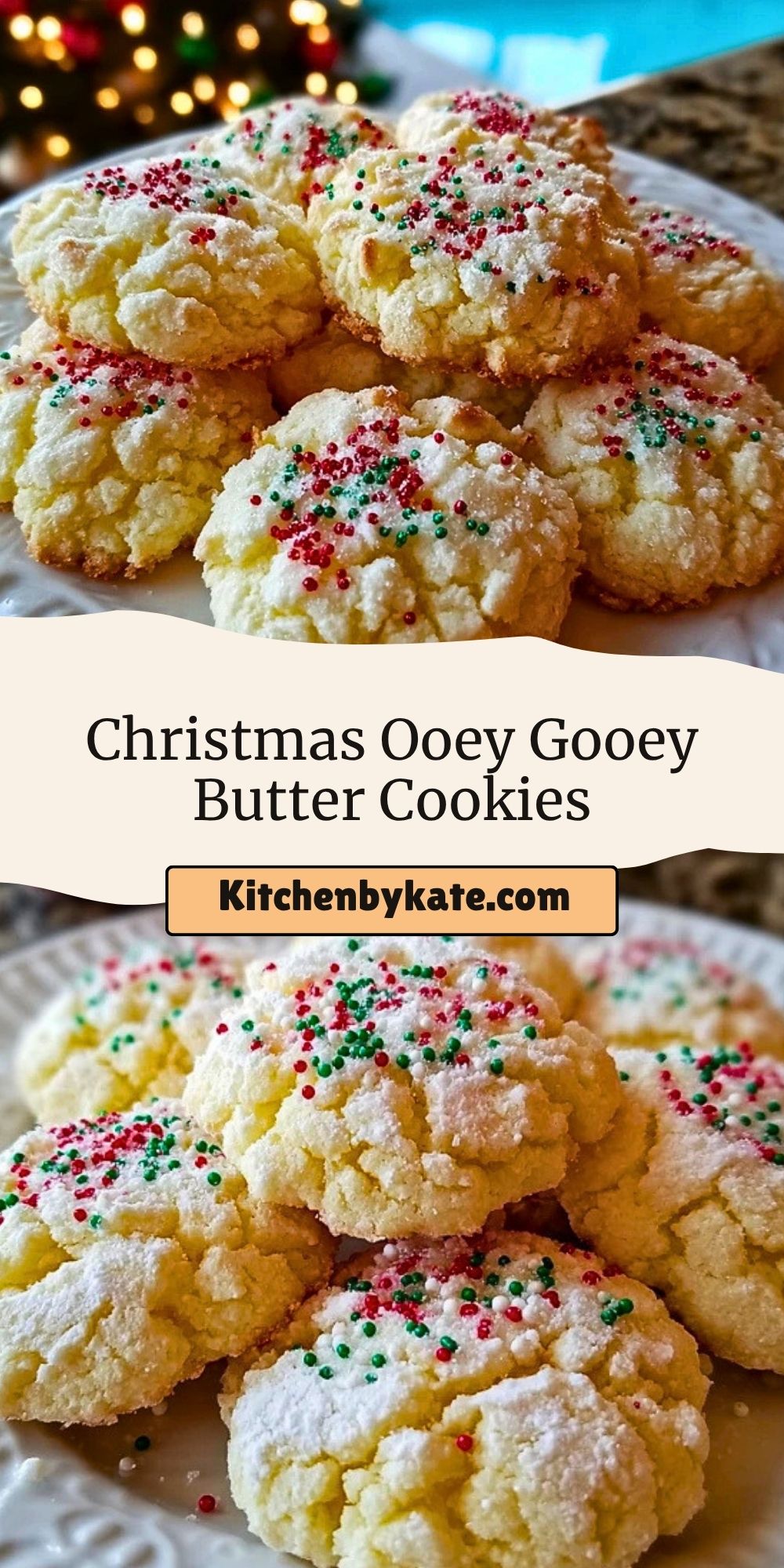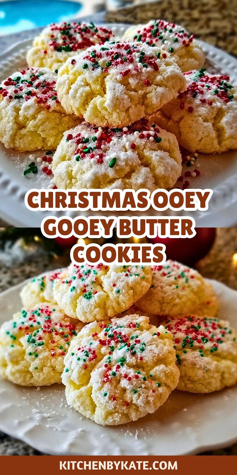 Christmas Ooey Gooey Butter Cookies are a soft, rich, and festive holiday treat with a buttery cream cheese base, a snowy powdered sugar coating, and cheerful Christmas sprinkles. These easy cookies are perfect for holiday dessert trays, cookie exchanges, Christmas party sweets, easy recipe ideas, dessert ideas, holiday baking, and fun food ideas when you want a quick festive dessert everyone will love.