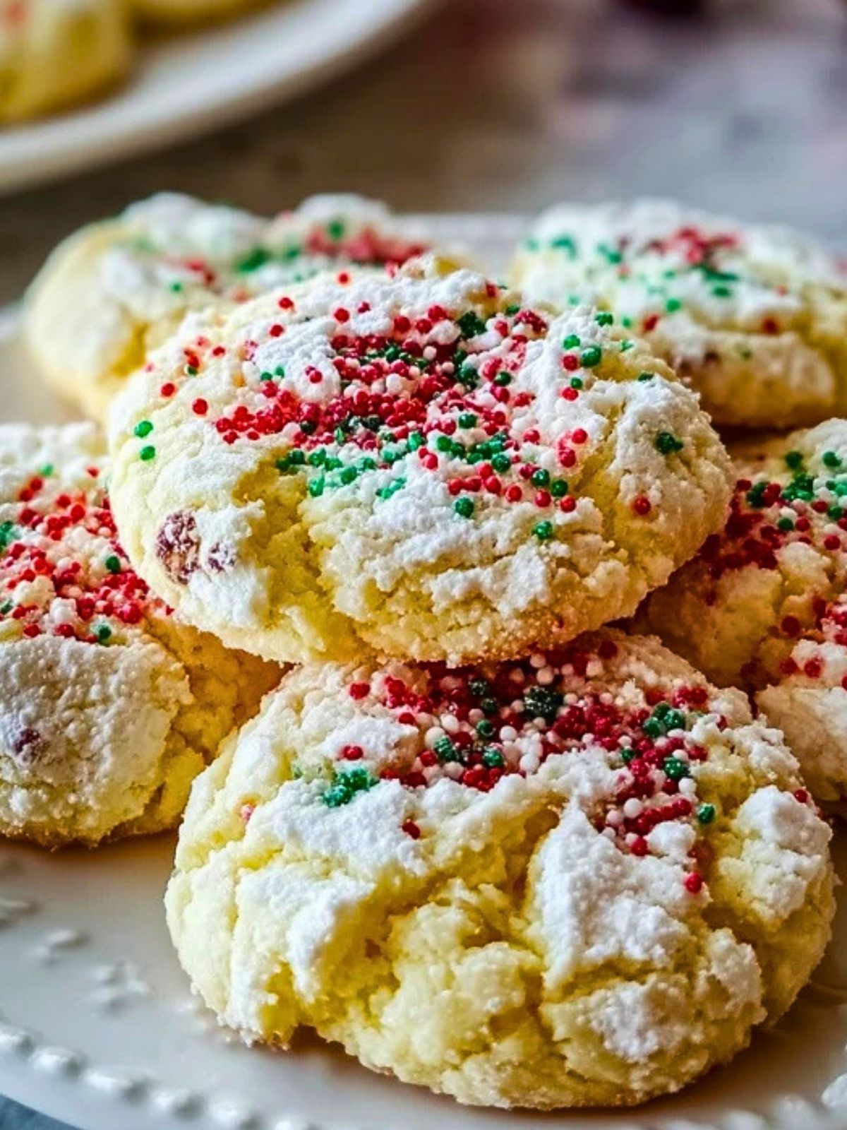 Christmas Ooey Gooey Butter Cookies are the kind of holiday treat that disappear fast from any cookie tray. They bake up with a soft, rich center, a delicate crackly coating of powdered sugar, and a cheerful shower of red, green, and white sprinkles that instantly makes them feel festive.