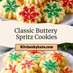 These Classic Buttery Spritz Cookies are the perfect holiday cookies—festive, buttery, and easy to make! This spritz cookie recipe uses simple ingredients and delivers melt-in-your-mouth texture with colorful designs. Great for gifting, decorating, and holiday cookie exchanges.