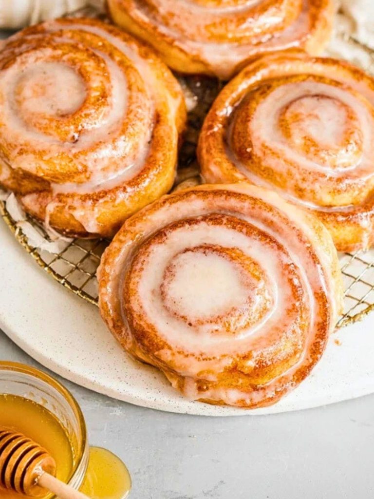These Classic Homemade Honey Buns are soft, cinnamon-swirled pastries topped with a sticky honey glaze—perfect for breakfast or dessert. Made from scratch, this comforting bakery-style treat is better than store-bought and free of preservatives. Great for freezing and reheating. Ideal for brunches, holidays, or cozy weekends.