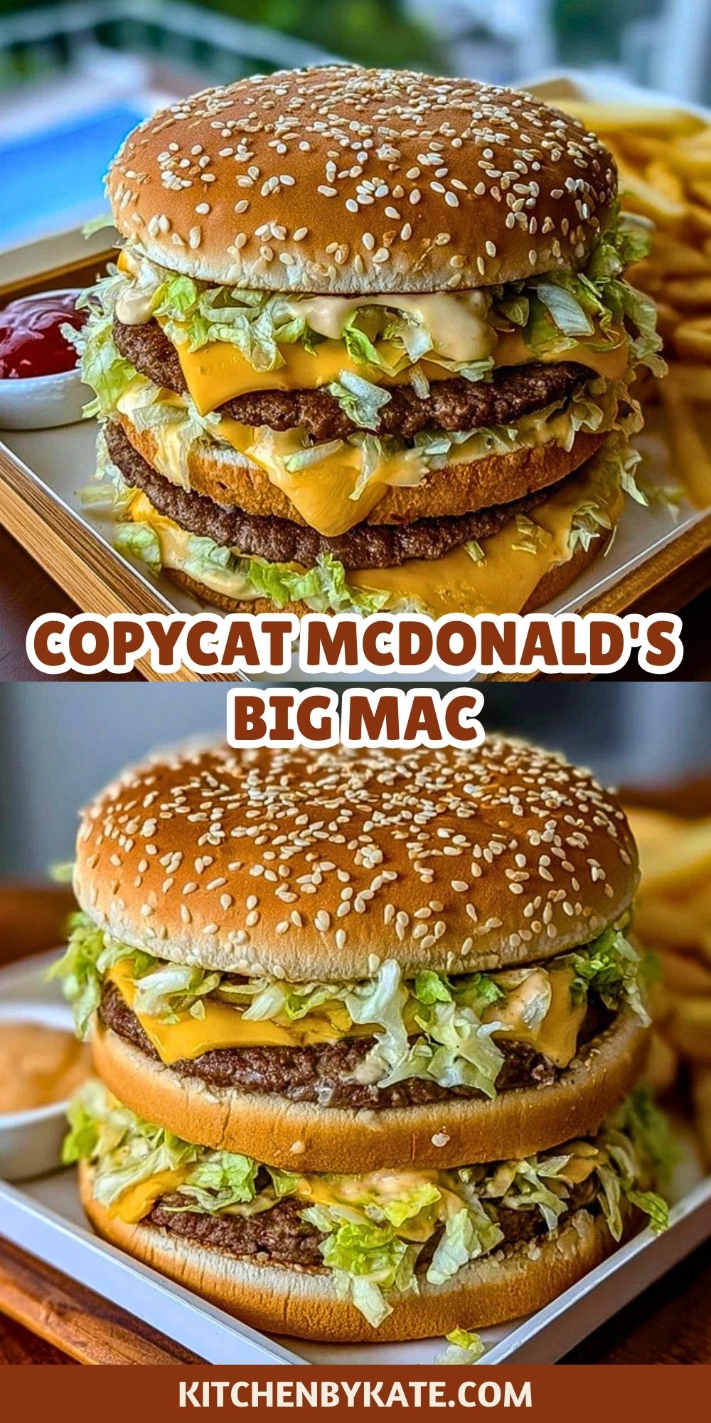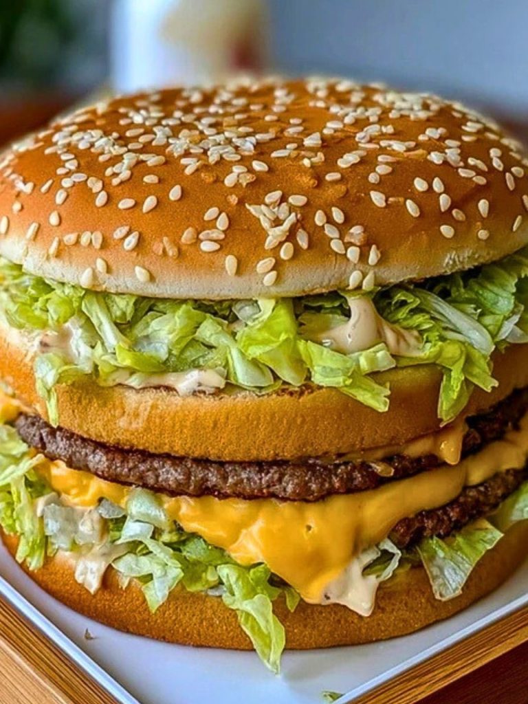 This Copycat McDonald’s Big Mac recipe brings the iconic fast-food favorite straight to your kitchen. Juicy beef patties, melty American cheese, shredded lettuce, tangy pickles, and that unmistakable special sauce stacked on sesame seed buns—this homemade Big Mac tastes just like the real deal. It’s an easy, family-friendly burger recipe perfect for nostalgic weeknight dinners or fun weekend meals.