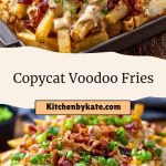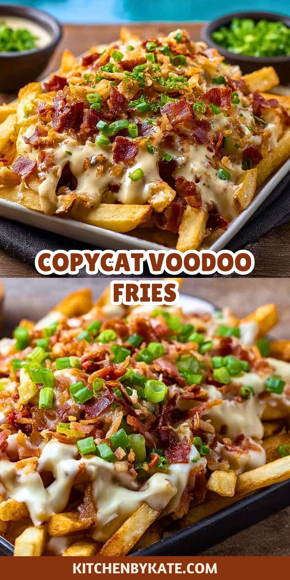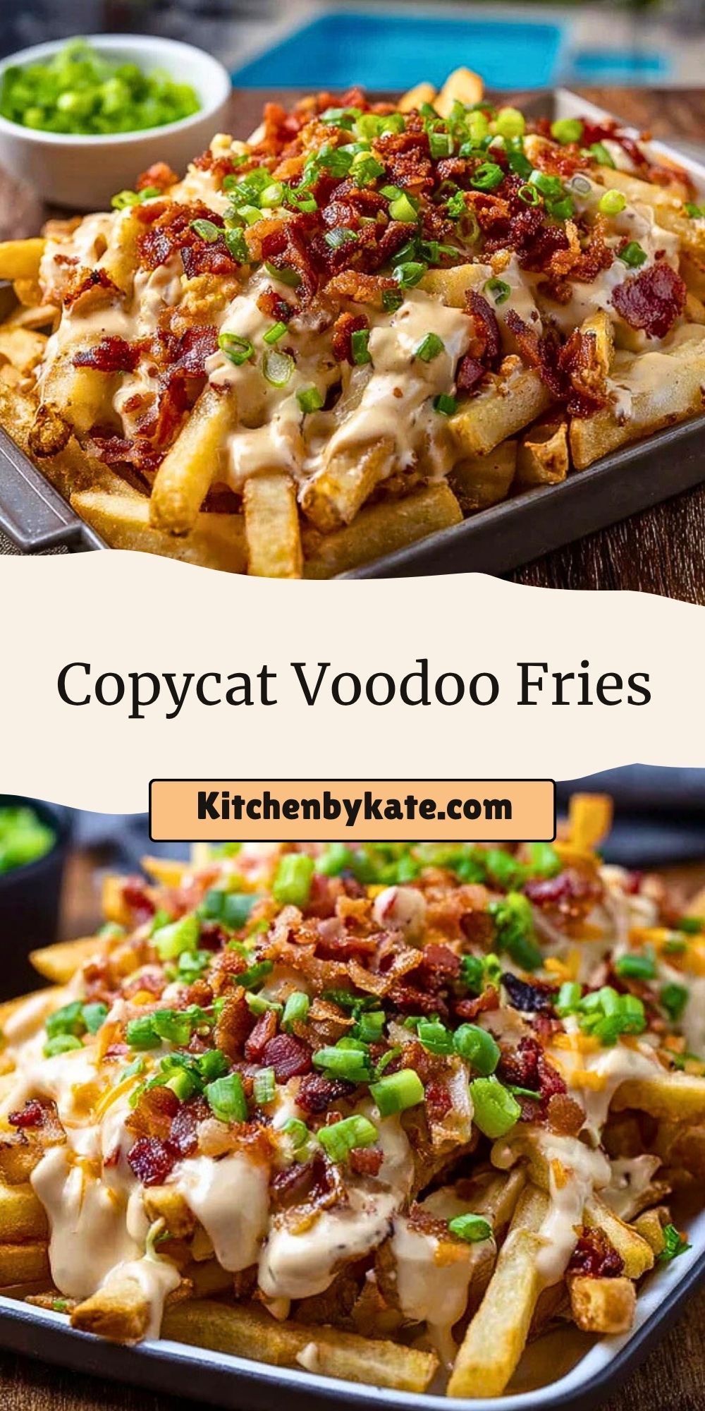 Golden, crispy fries smothered in a creamy cheese sauce, sprinkled generously with crispy bacon bits and fresh green onions—Copycat Voodoo Fries bring bold flavor to every bite. Inspired by the popular restaurant version, this irresistible dish is all about indulgence, making it perfect for game day snacks, party appetizers, or a treat-yourself kind of night.