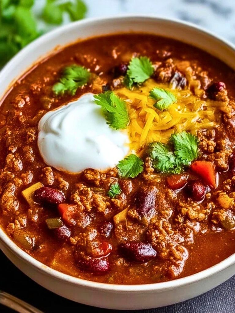 Topped with shredded cheddar, a dollop of sour cream, and fresh cilantro, each bite is a perfect balance of creamy, spicy, and satisfying. Whether you’re meal prepping for the week or feeding a hungry crowd on game day, this high protein chili has you covered with flavor and fuel.