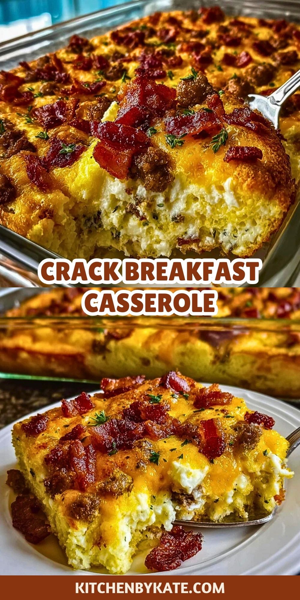 This Crack Breakfast Casserole is the ultimate make-ahead morning dish, loaded with bacon, sausage, eggs, and cheddar cheese. A perfect hearty breakfast bake for brunch gatherings, holidays, or freezer meal prep. Easy, cheesy, and full of comfort.