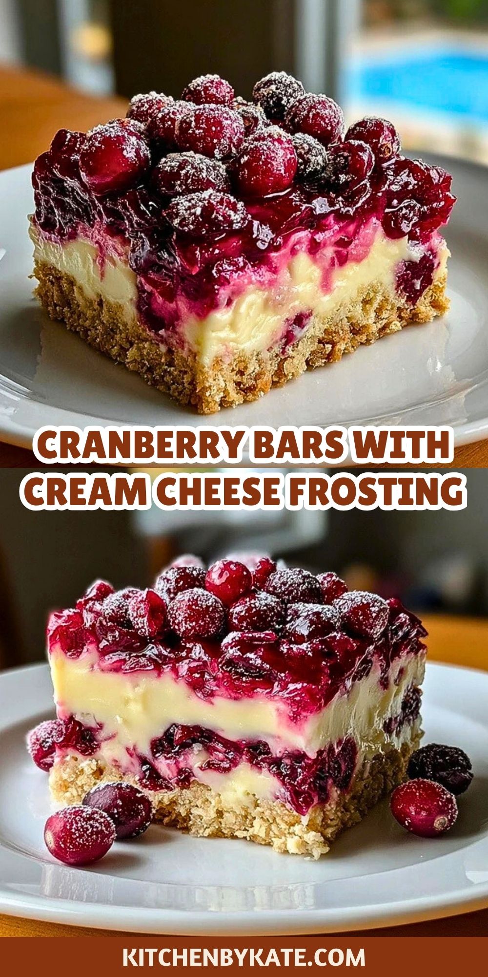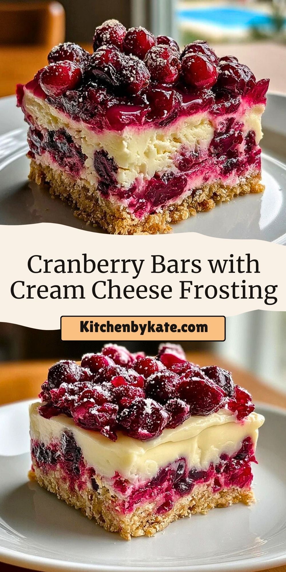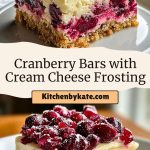 Serve these cranberry bars slightly chilled or at room temperature for the best texture. The creamy frosting firms up beautifully in the fridge, offering a smooth contrast to the tart cranberry layer and crisp crust.