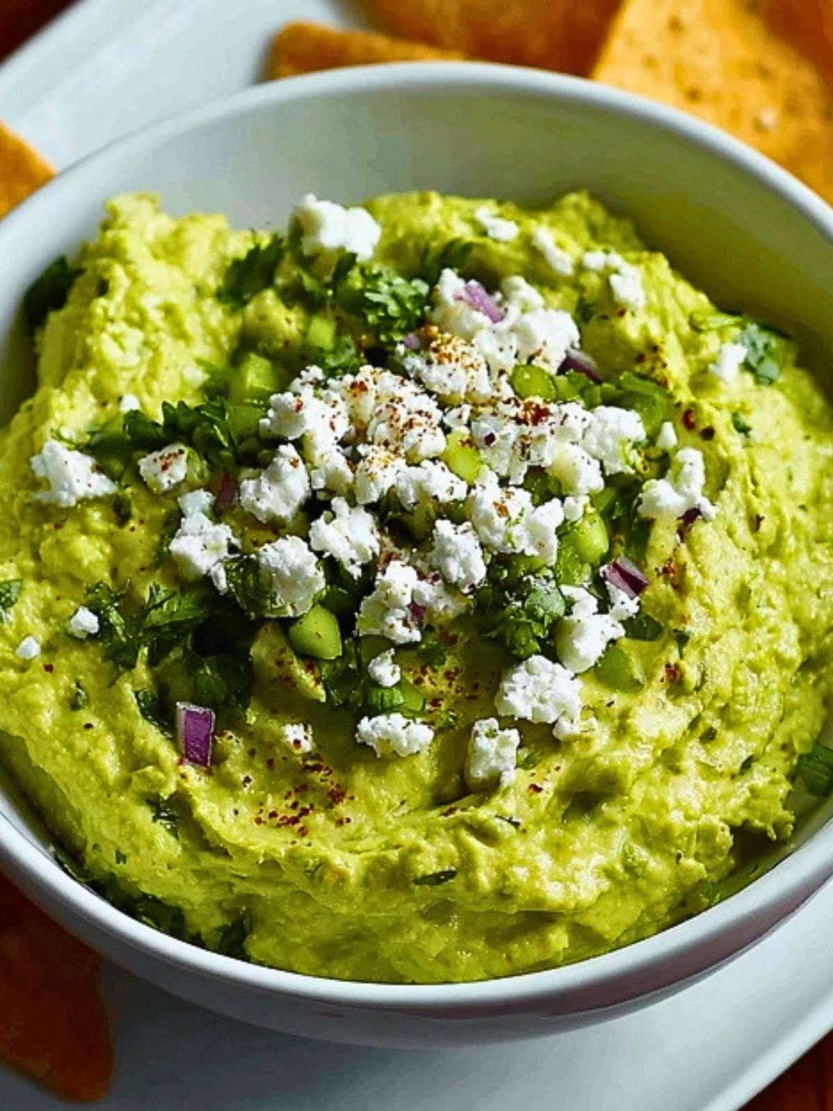 This dip is best served fresh, when the avocado is bright and the texture is at its creamiest. It pairs especially well with tortilla chips, toasted pita wedges, cucumber slices, carrot sticks, celery, or even as a spread inside wraps and sandwiches.
