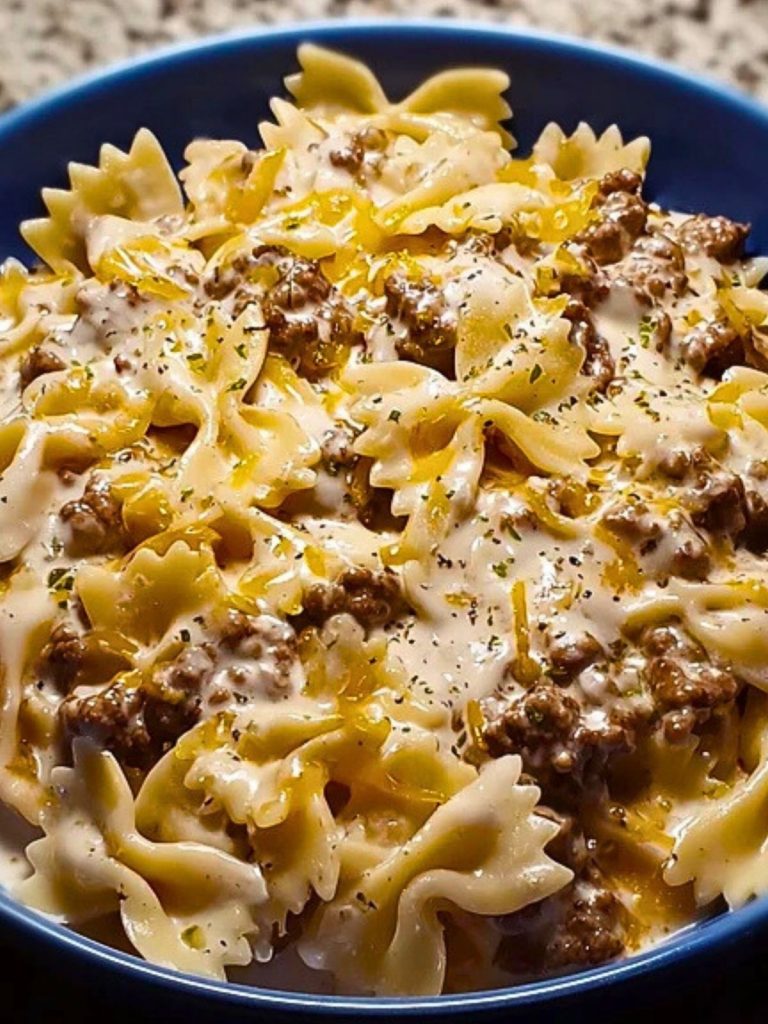 This pasta dish brings together the savory flavor of seasoned ground beef, the perfect bite of bowtie (farfalle) pasta, and a luxurious creamy cheese sauce. Whether you’re feeding a crowd or looking to impress with minimal effort, this recipe has your back. It’s ideal for busy weeknights, cozy Sunday dinners, or even as a satisfying lunch meal prep.