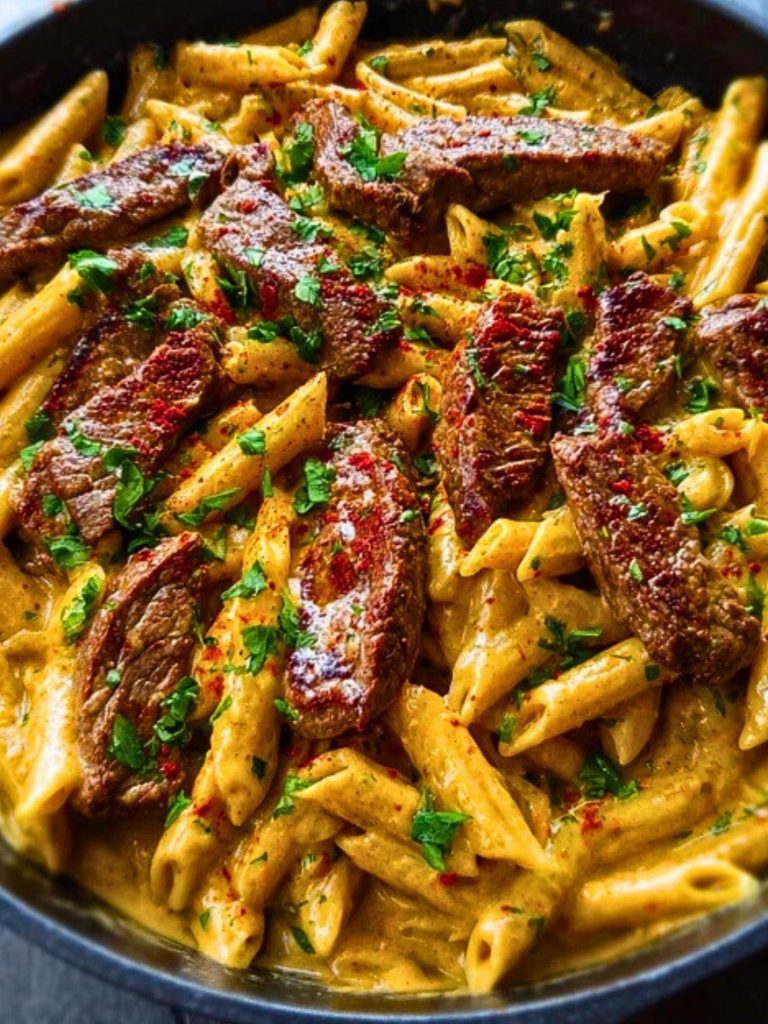 Golden-seared steak strips nestled over a bed of perfectly cooked pasta coated in a rich, creamy Cajun butter sauce – this dish is comfort food with a spicy Southern soul. Every forkful delivers a burst of smokiness from Cajun spices, a velvety smoothness from the sauce, and the juicy tenderness of steak cooked just right. It’s the kind of dinner that makes you want to linger at the table for just one more bite.