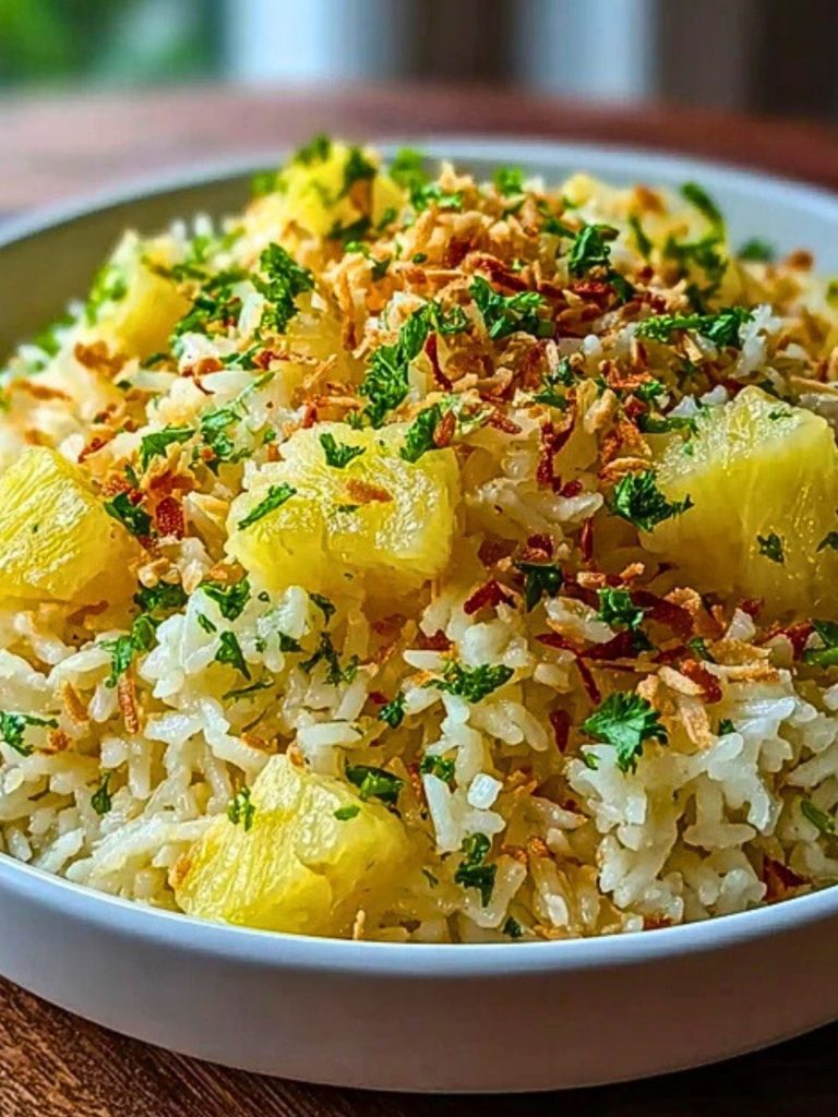 Creamy Coconut Pineapple Rice is a tropical twist on classic rice that will instantly brighten up your table. Fragrant jasmine rice is simmered in rich coconut milk until tender and creamy, then combined with sweet pineapple chunks and finished with a sprinkle of toasted coconut flakes and fresh herbs. It strikes the perfect balance between sweet and savory, making it ideal for summer cookouts, Hawaiian-themed meals, or as a delicious base for grilled meats and seafood.