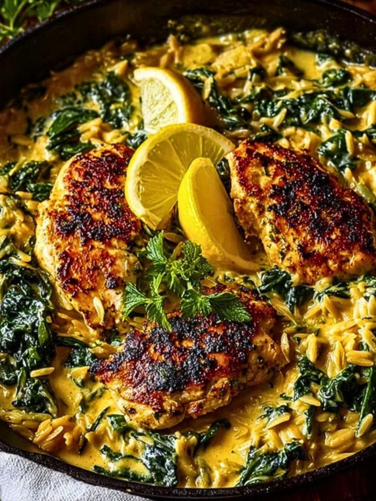 If comfort food had a spring makeover, this Creamy Lemon Chicken with Orzo & Greens would be it. Imagine juicy, golden-seared chicken breasts nestled in a velvety lemon-garlic cream sauce, swirled with tender orzo and a vibrant tangle of wilted greens. This one-skillet dinner is both cozy and refreshing, making it perfect for any night of the week when you want something satisfying without feeling heavy.