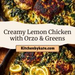 Creamy Lemon Chicken with Orzo & Greens is a one-skillet dinner bursting with bright citrus flavor, velvety garlic cream sauce, and hearty orzo. This quick and comforting chicken recipe features juicy seared chicken, wilted greens, and a tangy, creamy finish that’s perfect for any weeknight meal.