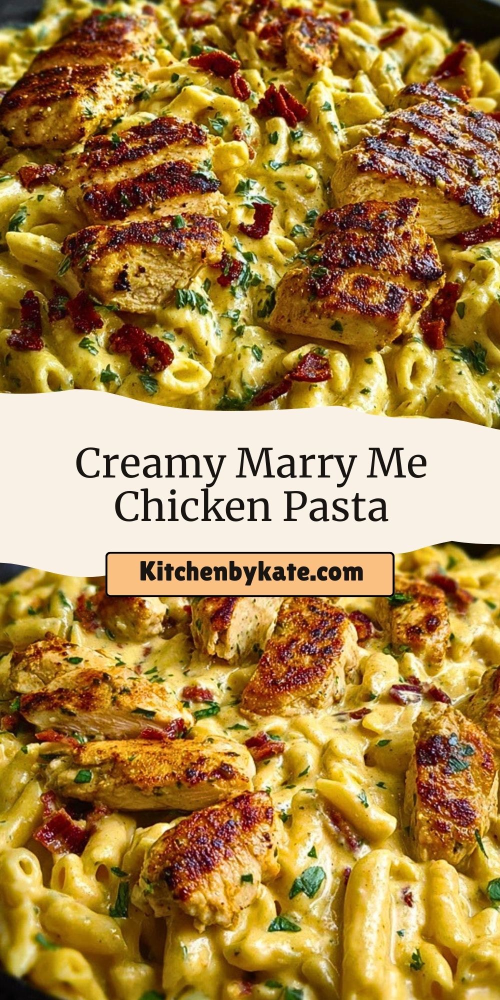 Rich, creamy, and packed with bold flavor, this Creamy Marry Me Chicken Pasta is everything you want in a comforting pasta dish. Juicy, seared chicken breast meets a velvety sun-dried tomato cream sauce, wrapped around perfectly cooked penne, all finished with crispy bacon bits and fresh herbs. This dish is indulgent, soul-warming, and perfect for a cozy dinner or a special occasion.