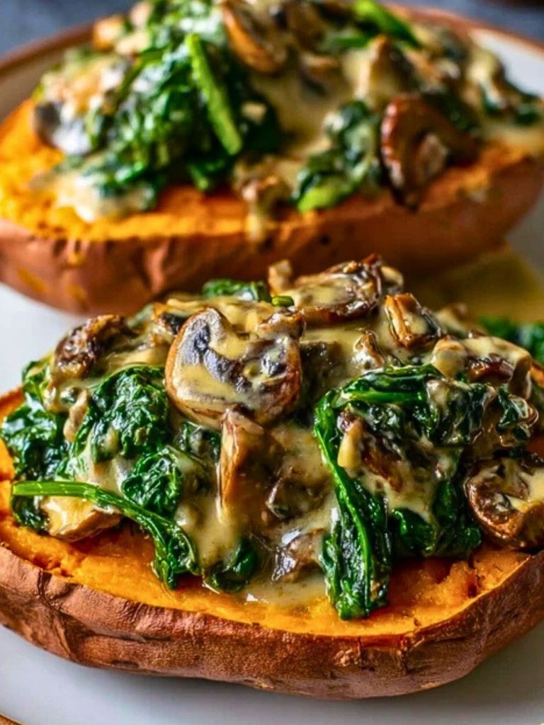 Hearty, wholesome, and packed with flavor, these Creamy Mushroom and Spinach Stuffed Sweet Potatoes are the ultimate comfort food with a healthy twist. Imagine velvety creamed spinach and earthy mushrooms layered generously over soft, roasted sweet potato halves. It’s a cozy, satisfying dish that feels indulgent but is entirely nourishing.