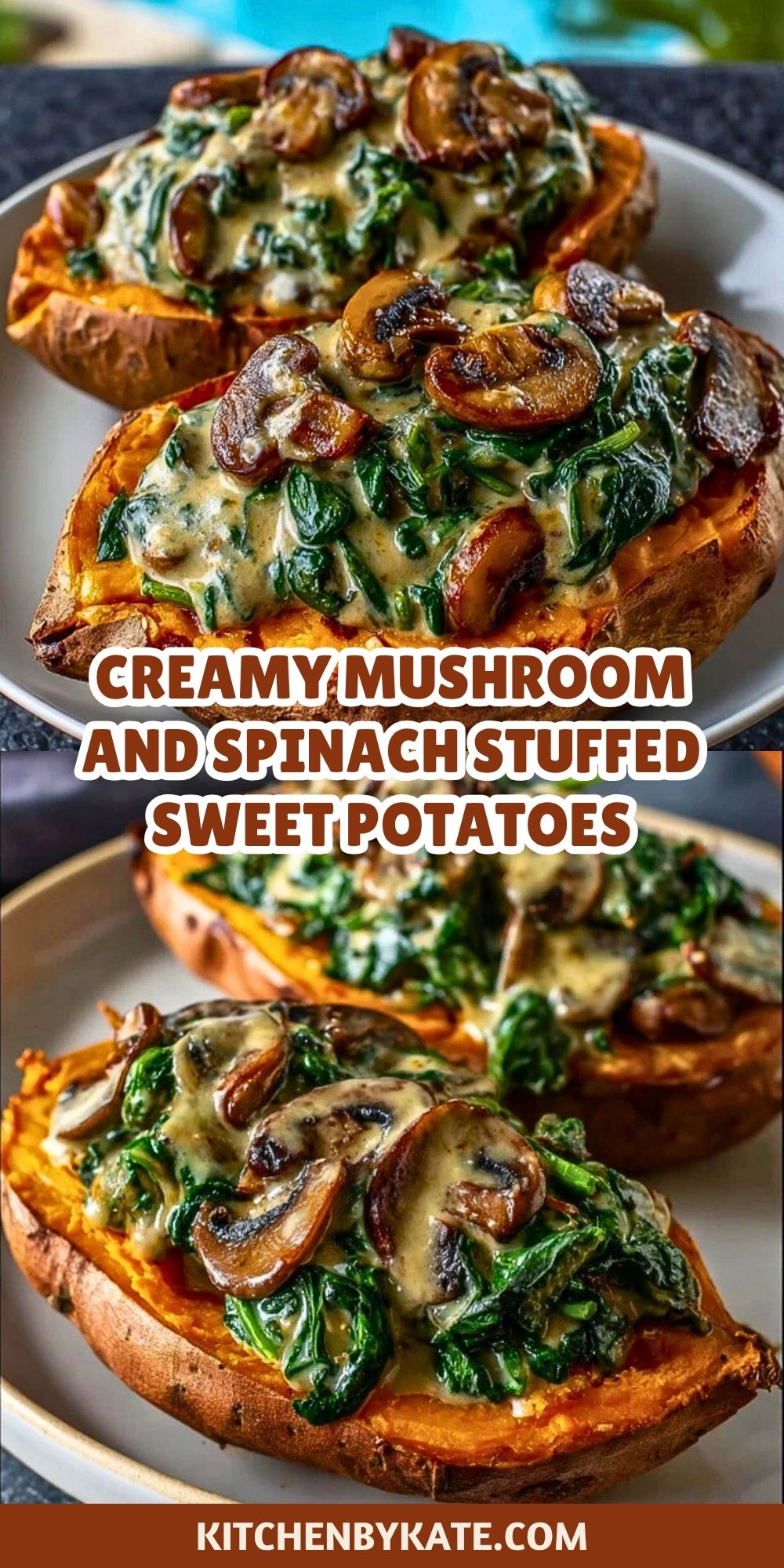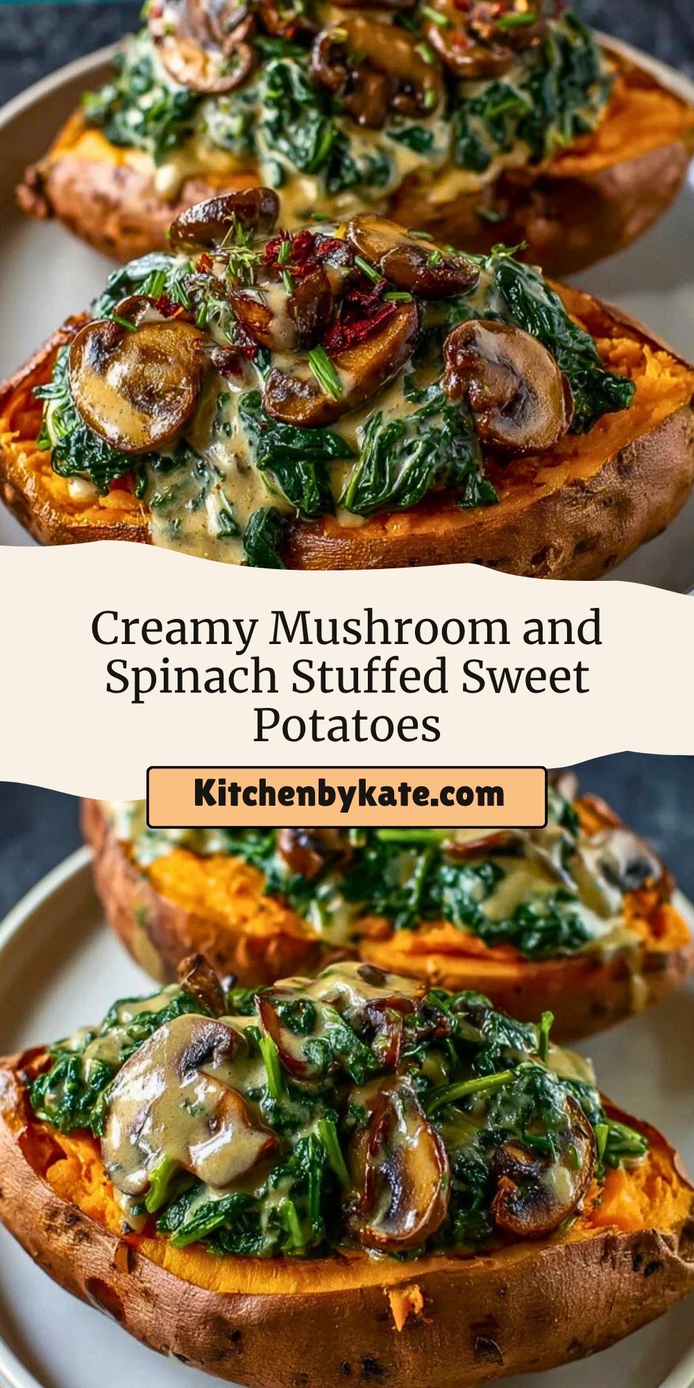 Creamy Mushroom and Spinach Stuffed Sweet Potatoes