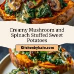 Creamy Mushroom and Spinach Stuffed Sweet Potatoes are the perfect vegetarian comfort food! This stuffed sweet potato recipe combines roasted sweet potatoes with a rich creamy spinach mushroom filling—ideal for a hearty weeknight dinner or meal prep. Gluten-free, wholesome, and delicious!