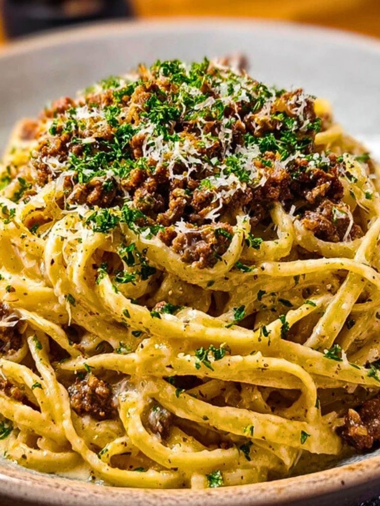 Creamy Parmesan Beef Linguine with Garlic Butter Sauce is a rich, comforting pasta recipe made with ground beef, garlic, and a velvety cream sauce. Perfect for a hearty weeknight dinner or cozy weekend meal. This easy-to-follow recipe delivers restaurant-quality results in under 40 minutes. Keywords: creamy beef linguine, garlic butter sauce pasta, parmesan beef pasta.