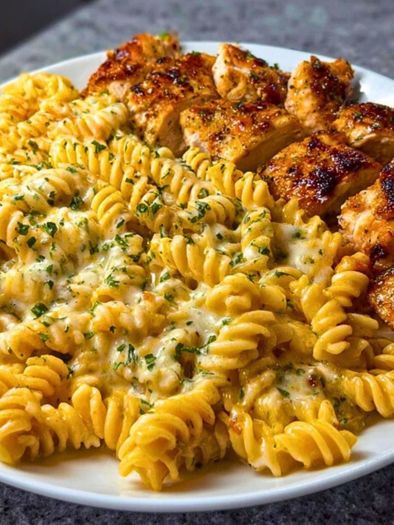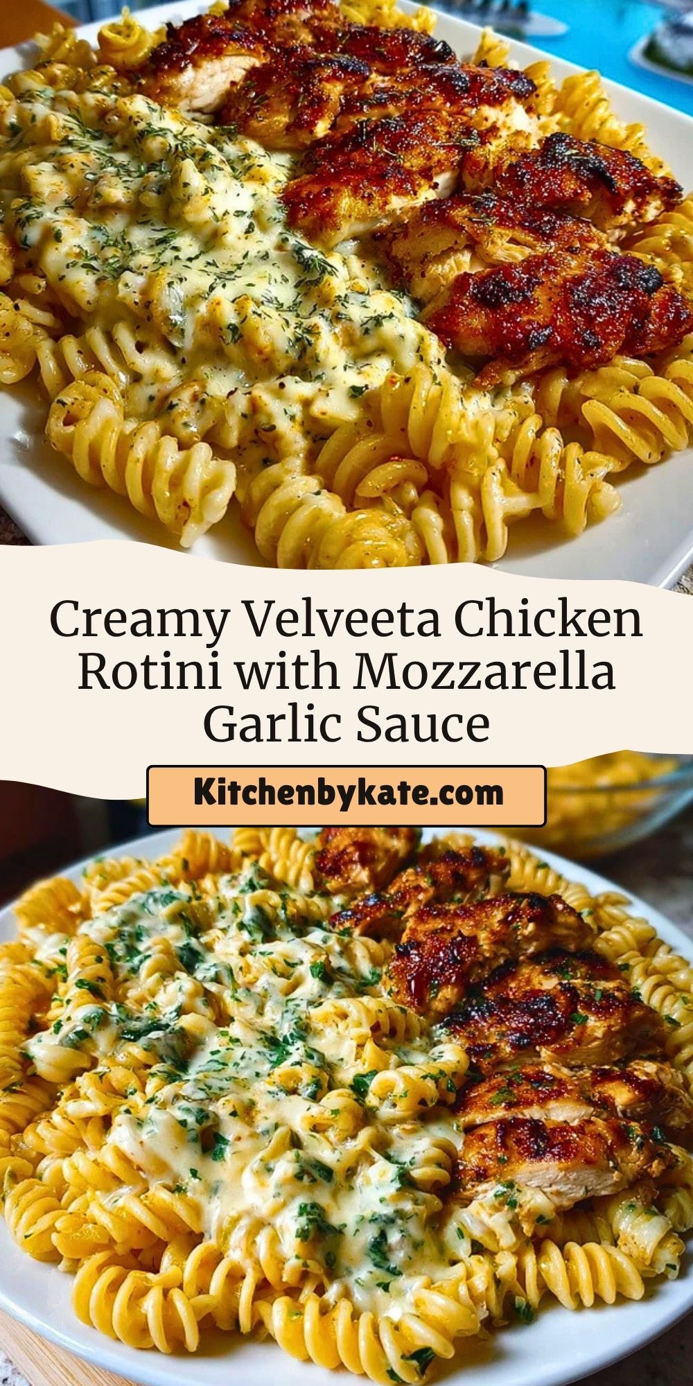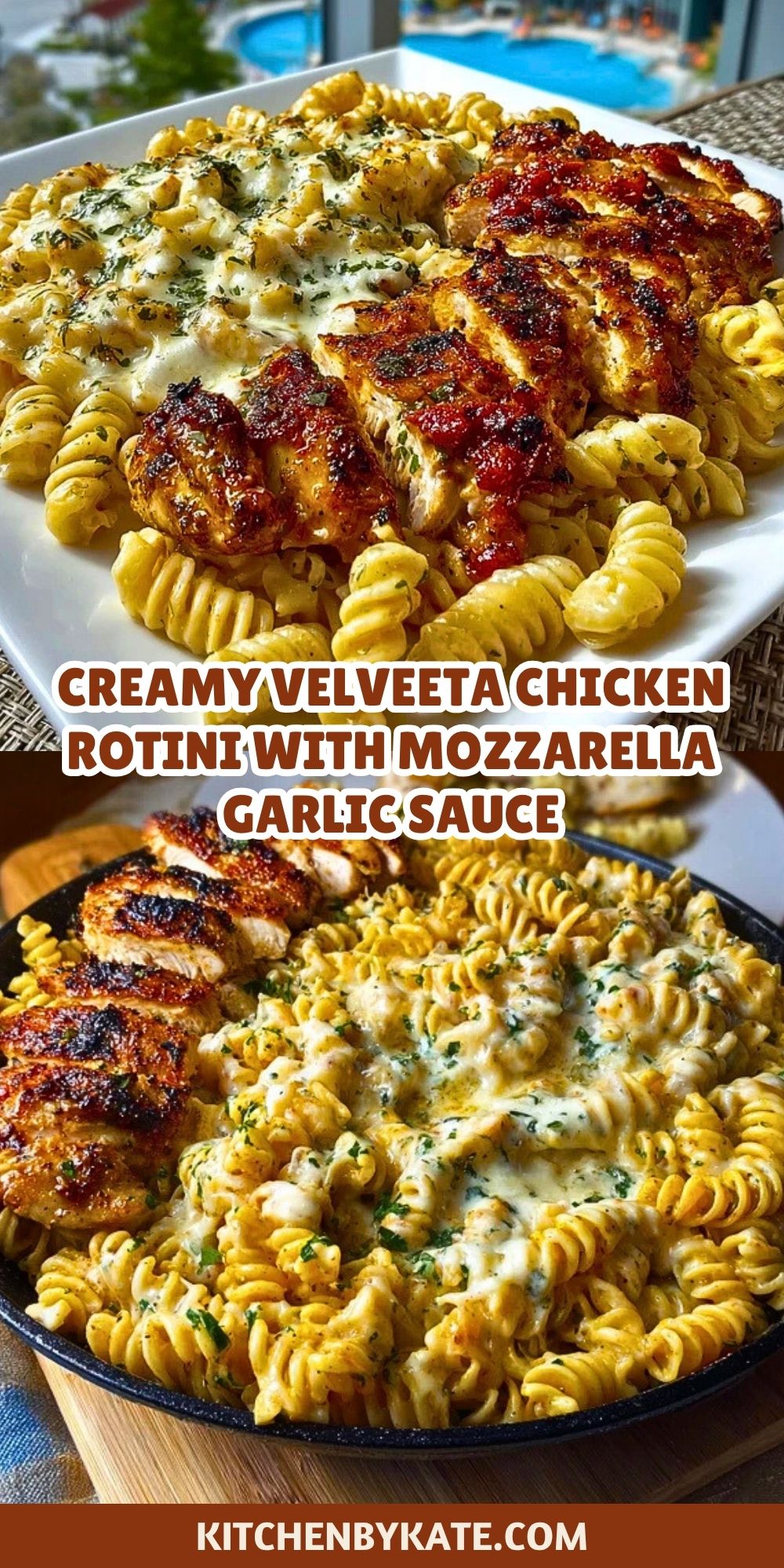 Golden, juicy chicken meets tender rotini pasta, all swirled together in a rich Velveeta and mozzarella garlic sauce that’s just the right kind of indulgent. This dish is comfort food elevated—an ideal weeknight dinner that feels like a special occasion on a plate.