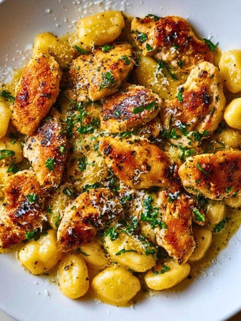 Crispy Garlic Chicken & Gnocchi is a one-pan dinner ready in 30 minutes, combining golden seared chicken and tender gnocchi in a buttery garlic sauce. Perfect for weeknights or cozy gatherings, this simple yet restaurant-worthy meal is packed with flavor, easy to customize, and sure to please every palate.