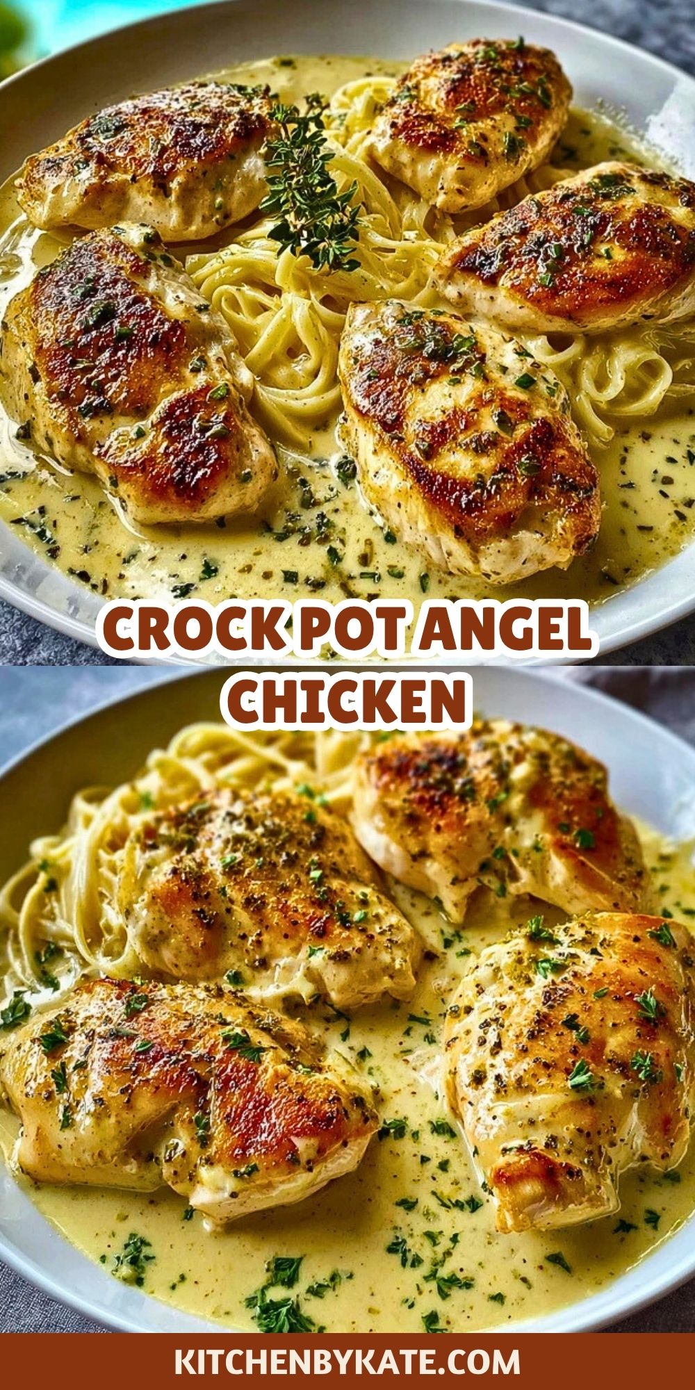 This Crock Pot Angel Chicken recipe is the ultimate comfort food—tender chicken breasts slow-cooked in a creamy, rich mushroom and Italian-seasoned sauce. Served over angel hair pasta, it’s an easy and delicious family dinner idea. Perfect for busy weeknights or cozy weekends!