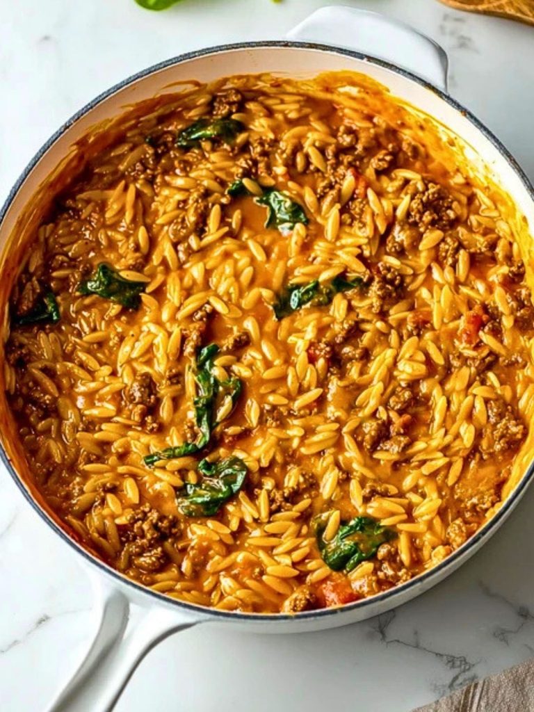 Looking for a comforting, one-pot meal that’s hearty, flavorful, and comes together in under 30 minutes? This Delicious Ground Beef Orzo is just what your busy weeknights need. Tender orzo pasta simmered in a rich, savory tomato beef sauce, balanced with creamy textures and wilted spinach, makes every spoonful taste like a warm hug. Whether you’re cooking for your family or meal prepping for the week, this dish is a guaranteed hit.