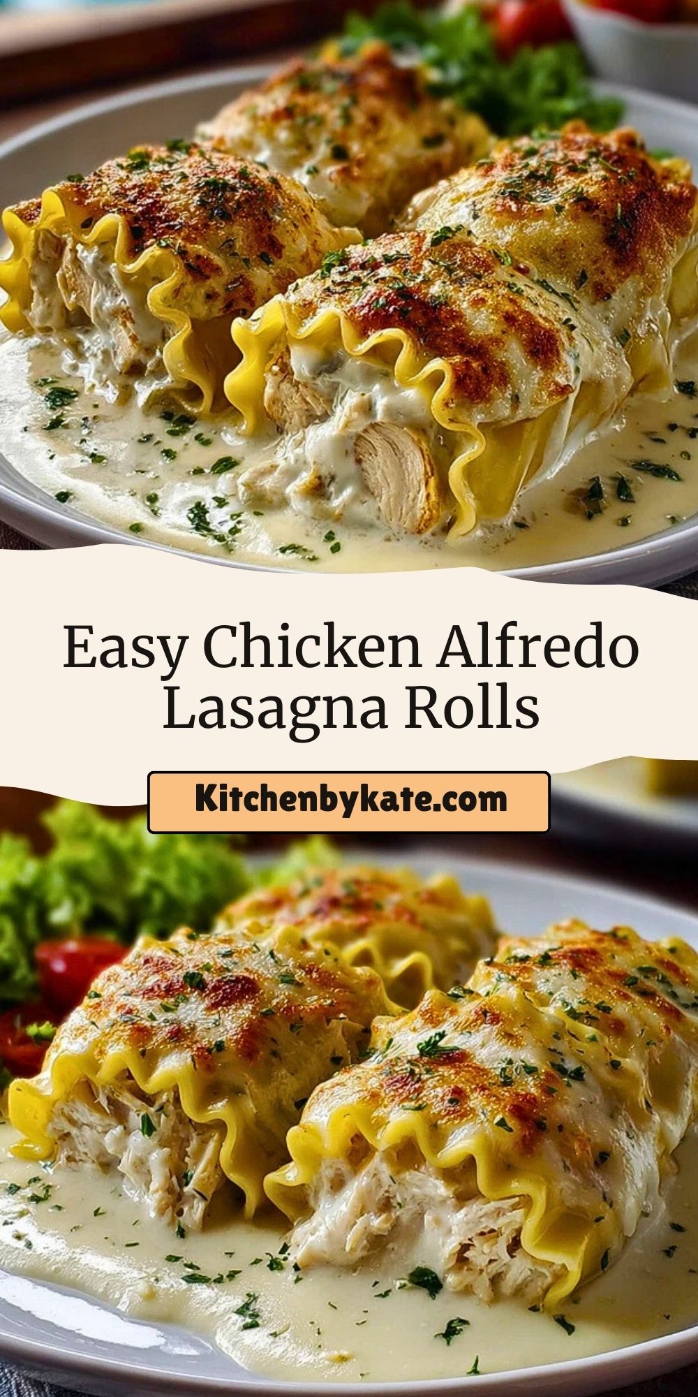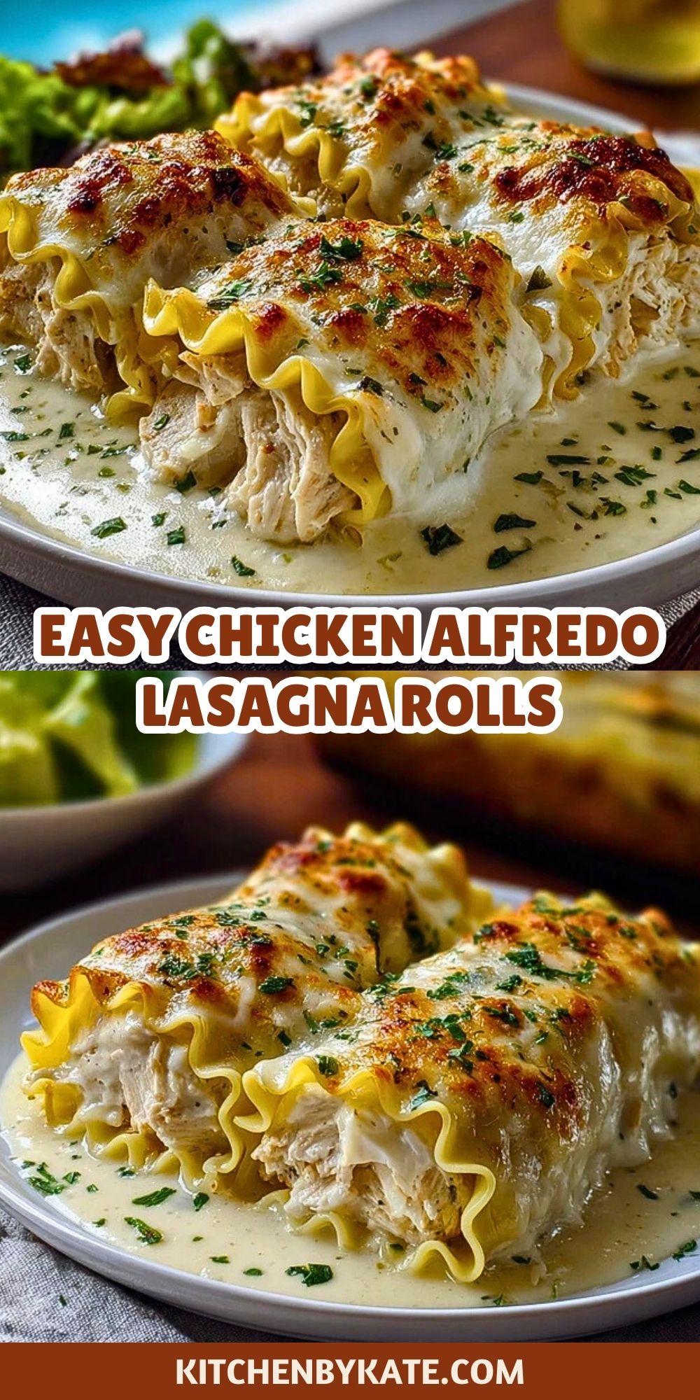 This Easy Chicken Alfredo Lasagna Rolls recipe is the ultimate comfort food, made with shredded chicken, creamy Alfredo sauce, ricotta, mozzarella, and Parmesan cheeses. Perfect for weeknight dinners or make-ahead meals, these rolled lasagna noodles bake to golden, cheesy perfection. A crowd-pleasing pasta dish packed with Italian-inspired flavor!