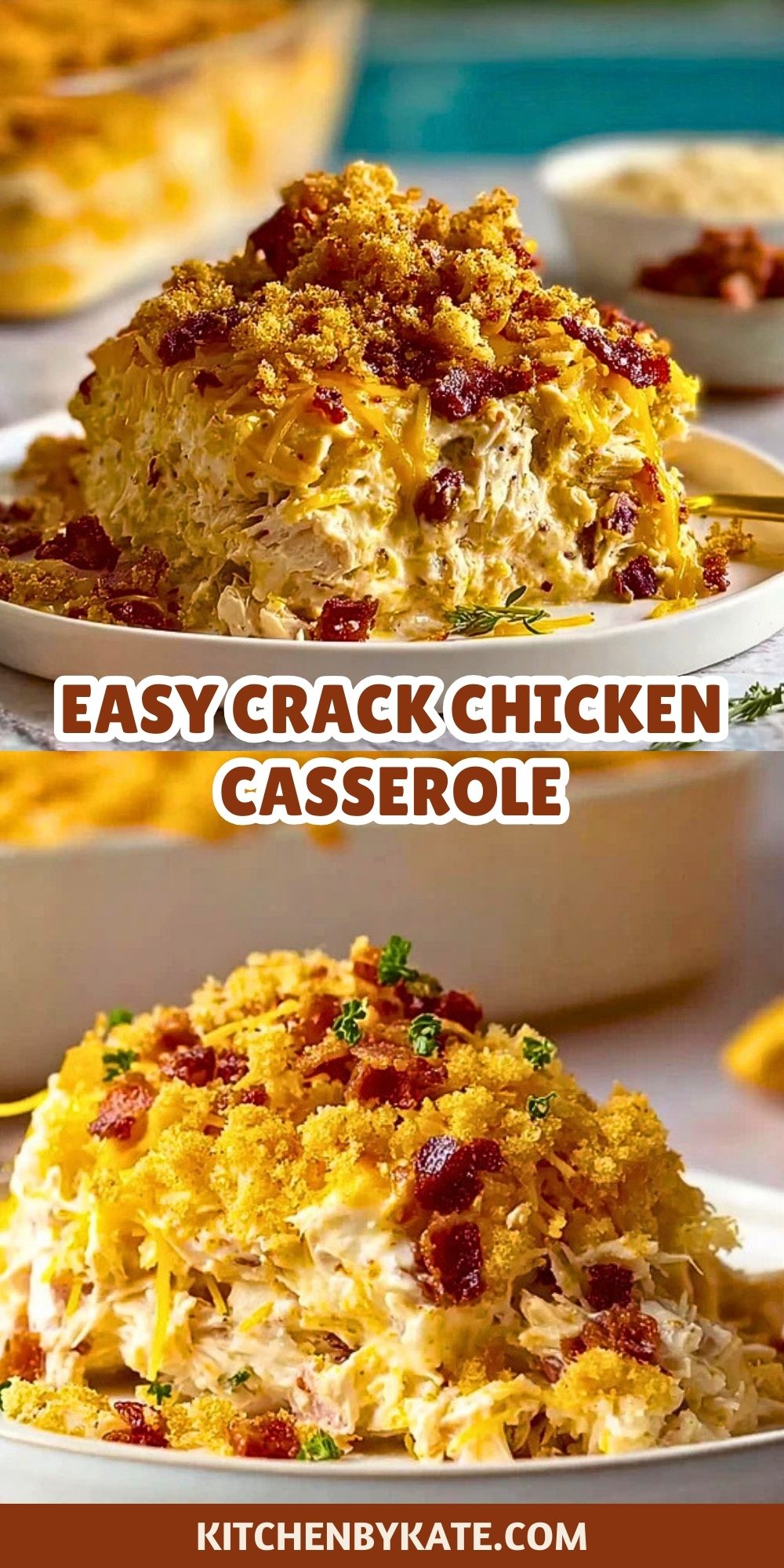This Easy Crack Chicken Casserole is a creamy, cheesy, and savory comfort food recipe made with shredded chicken, bacon, cream cheese, and ranch seasoning. Perfect for family dinners, meal prep, or potlucks, it’s a low-carb friendly dish that reheats beautifully.