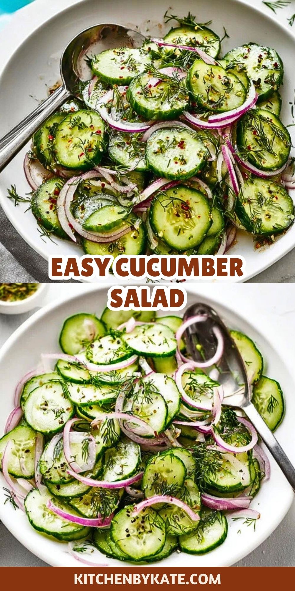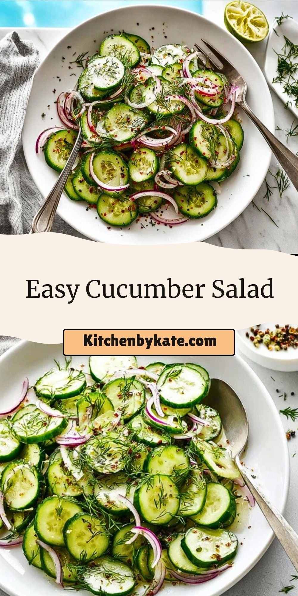 This Easy Cucumber Salad is the ultimate light and refreshing side dish made with crisp cucumbers, tangy red onion, fresh dill, and a simple vinaigrette. Perfect for summer meals, barbecues, or a healthy low-carb option. Enjoy this quick cucumber salad recipe with just a handful of ingredients and minimal prep!