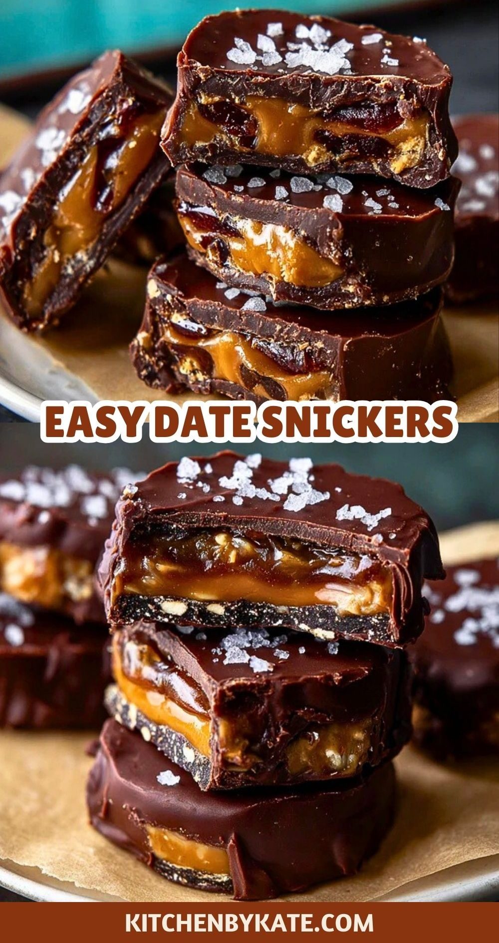 Sticky, gooey, chocolate-drenched, and shockingly guilt-free—these Easy Date Snickers are what dessert dreams are made of. Imagine biting into a luscious layer of sweet Medjool dates stuffed with creamy peanut butter and crunchy roasted peanuts, all wrapped in a silky blanket of dark chocolate and topped with flaky sea salt. Each bite delivers a satisfying mix of sweet, salty, chewy, and crunchy goodness.