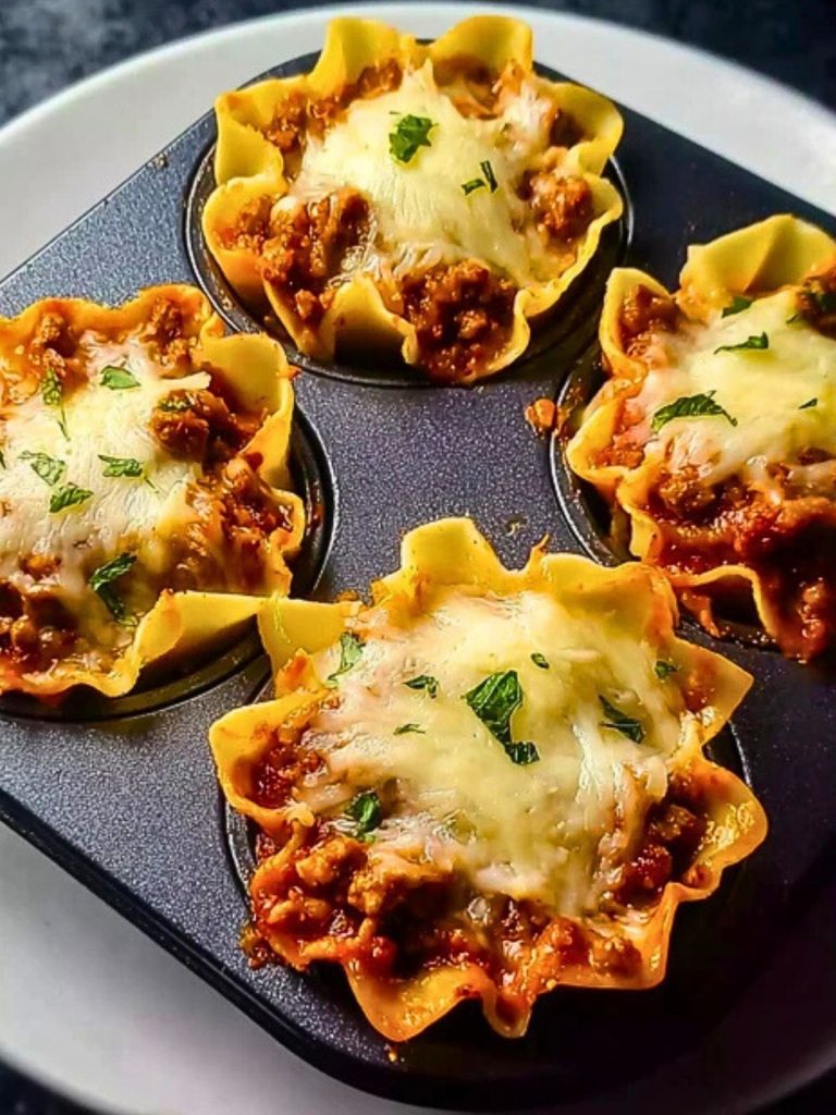 Each cup features perfectly curled pasta nests filled with savory meat sauce and melted cheese, forming a golden crown that’s impossible to resist. Whether you’re feeding a crowd or simply craving something hearty and fun, these lasagna cups are a delicious twist on a classic favorite.