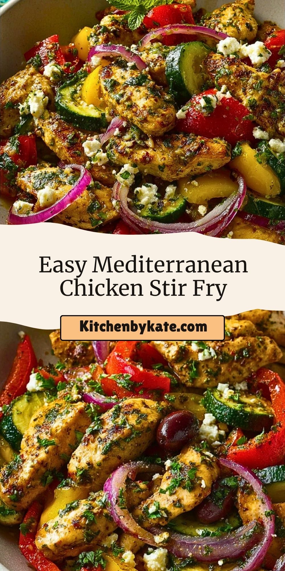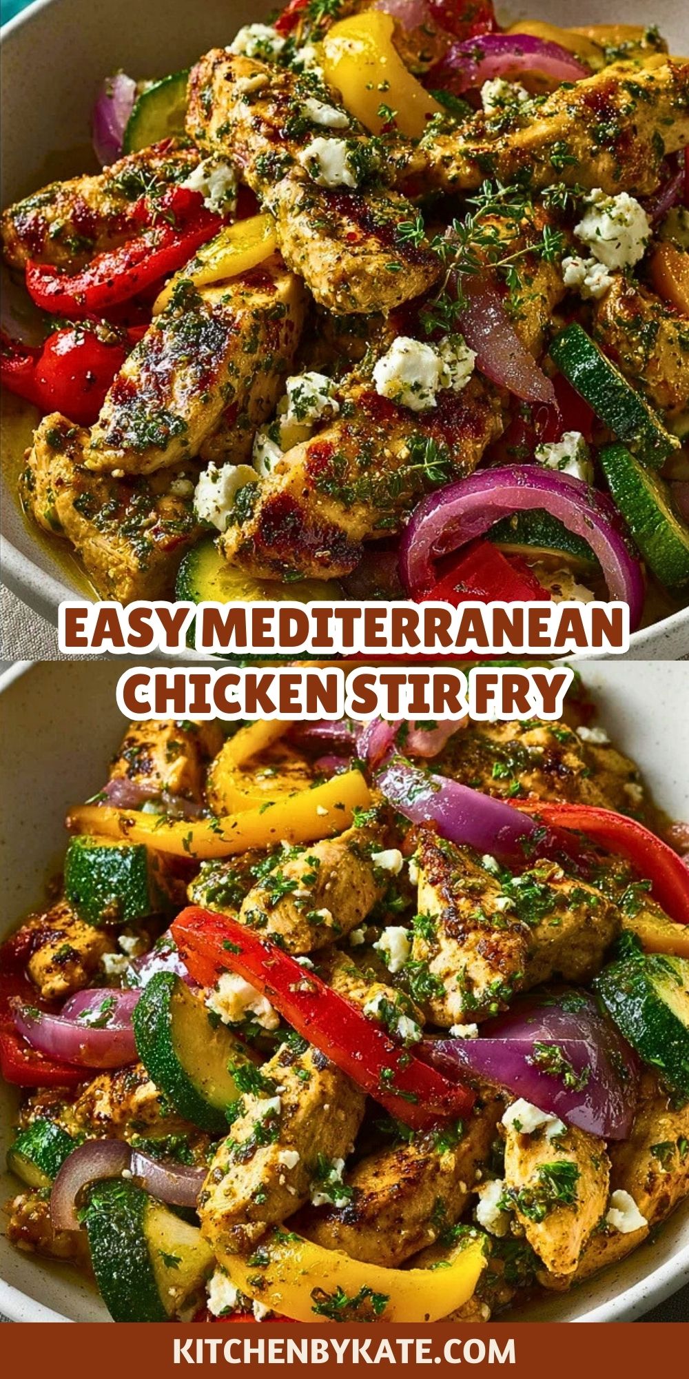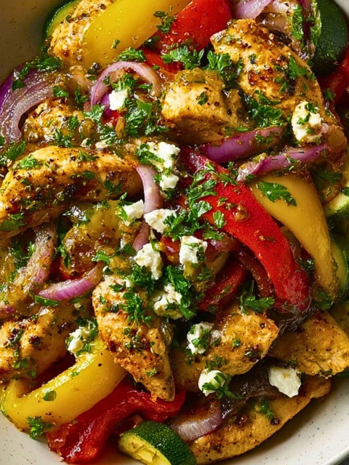 Bursting with vibrant colors, juicy chicken, and the bold flavors of the Mediterranean, this Easy Mediterranean Chicken Stir Fry is your new go-to for a fast and flavorful weeknight dinner. It brings together tender chicken strips, sweet bell peppers, zucchini, red onion, and a punchy garlic-herb vinaigrette. Topped with creamy crumbled feta and fresh parsley, every bite is fresh, hearty, and full of character.
