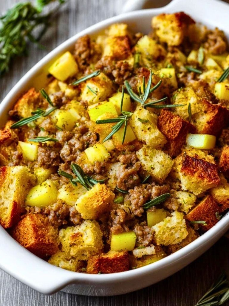 This Easy Sausage and Apple Stuffing is a savory and slightly sweet holiday classic made with crispy bread cubes, flavorful sausage, fresh apples, and herbs. Perfect for Thanksgiving or any comforting family dinner, it’s a hearty, versatile, and meal-prep-friendly side dish that everyone will love.