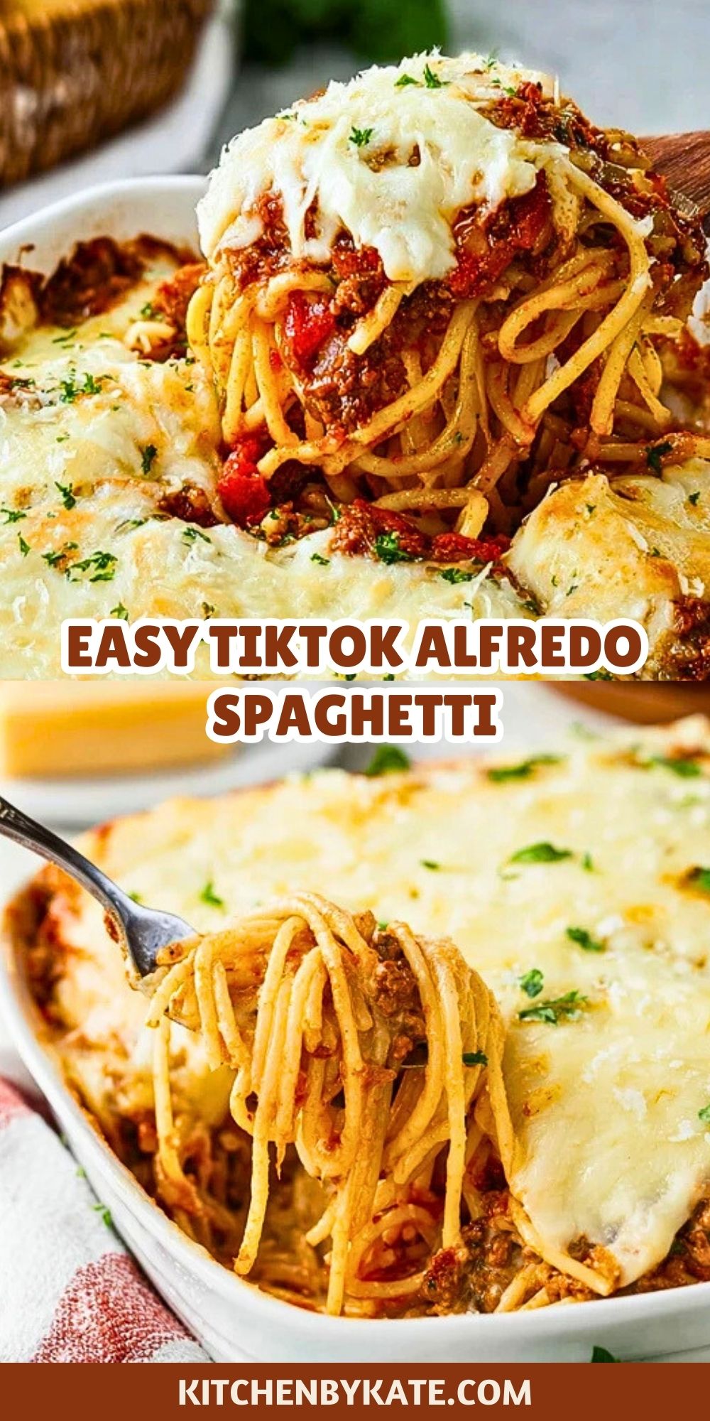 Creamy, cheesy, and irresistibly satisfying, this Easy TikTok Alfredo Spaghetti is the viral comfort food pasta dish you didn’t know you needed. A perfect mix of rich Alfredo sauce layered with spaghetti and hearty meat sauce, baked until bubbly and golden. Every bite delivers savory, cheesy goodness that feels both indulgent and easy to whip up on a busy weeknight.