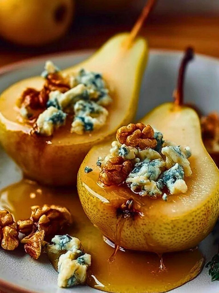 Elegant Warm Baked Pears with Blue Cheese and Honey Drizzle